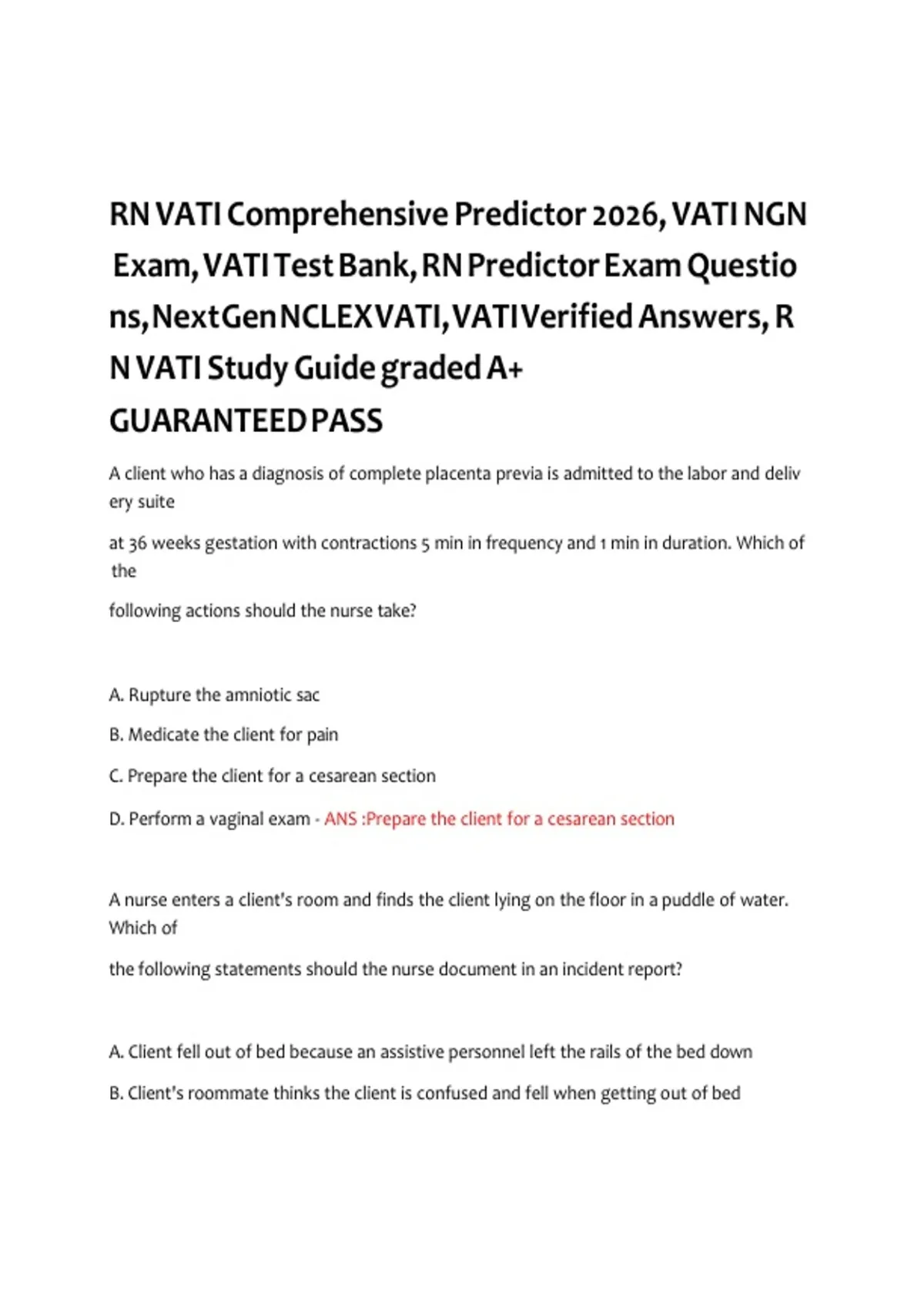 Exam, VATI Test Bank, RN Predictor Exam Questio