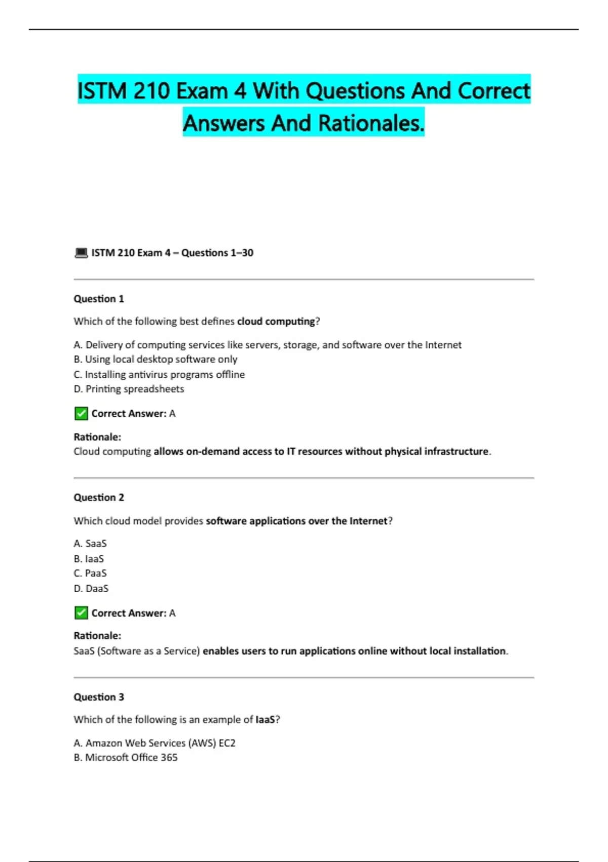 ISTM 210 Exam 4 – Questions 1–30