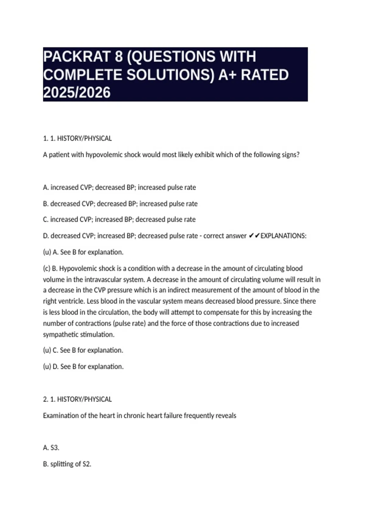 D. decreased CVP; increased BP; decreased pulse rate - correct answer ✔✔EXPLANATIONS: