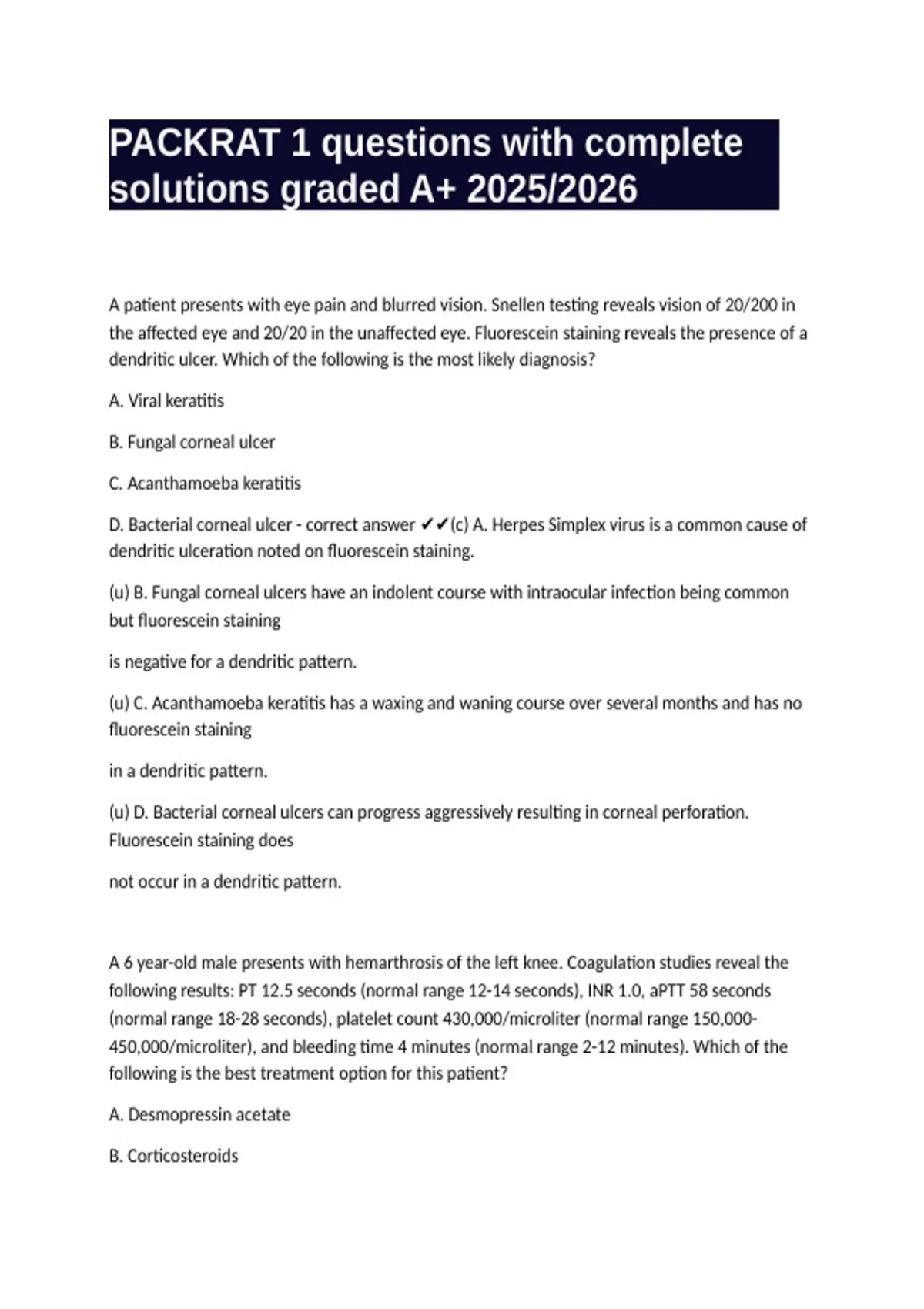 PACKRAT 1 questions with complete solutions graded A+ 2025/2026