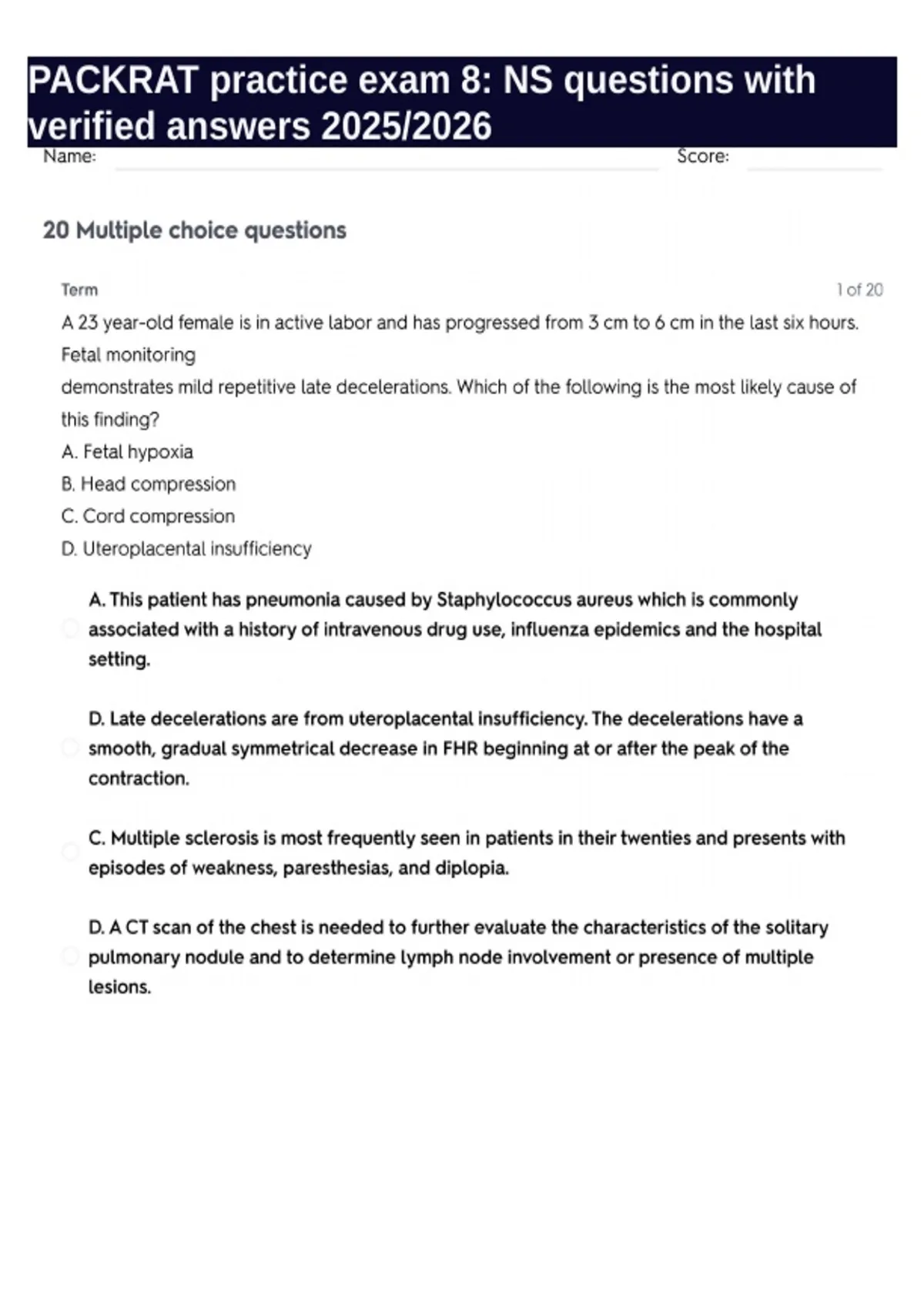 PACKRAT practice exam 8 NS questions with verified answers 2025/2026