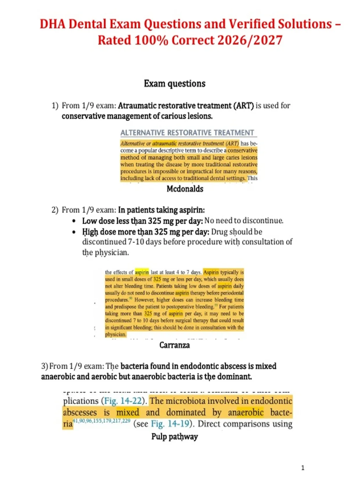 DHA Dental Exam Questions and Verified Solutions –