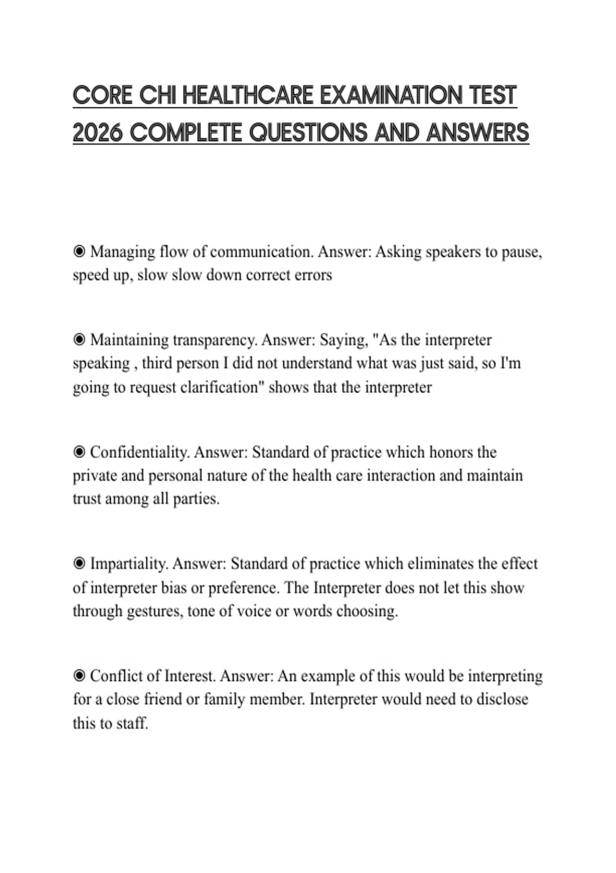 CORE CHI HEALTHCARE EXAMINATION TEST 2026 COMPLETE QUESTIONS AND ANSWERS