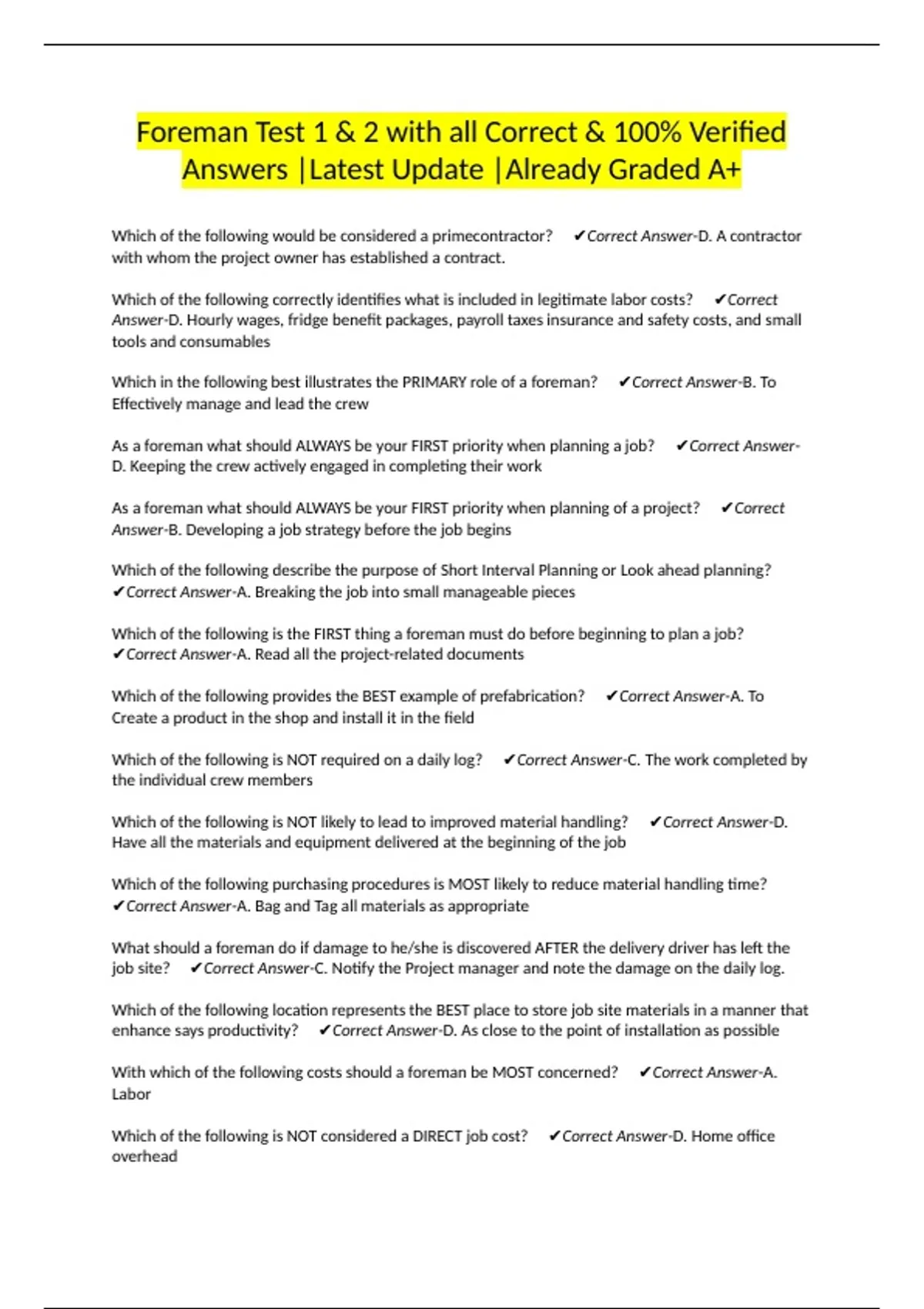 she crew? ✔Correct Answer-D. The foreman is responsible for anything that occurs at the job site