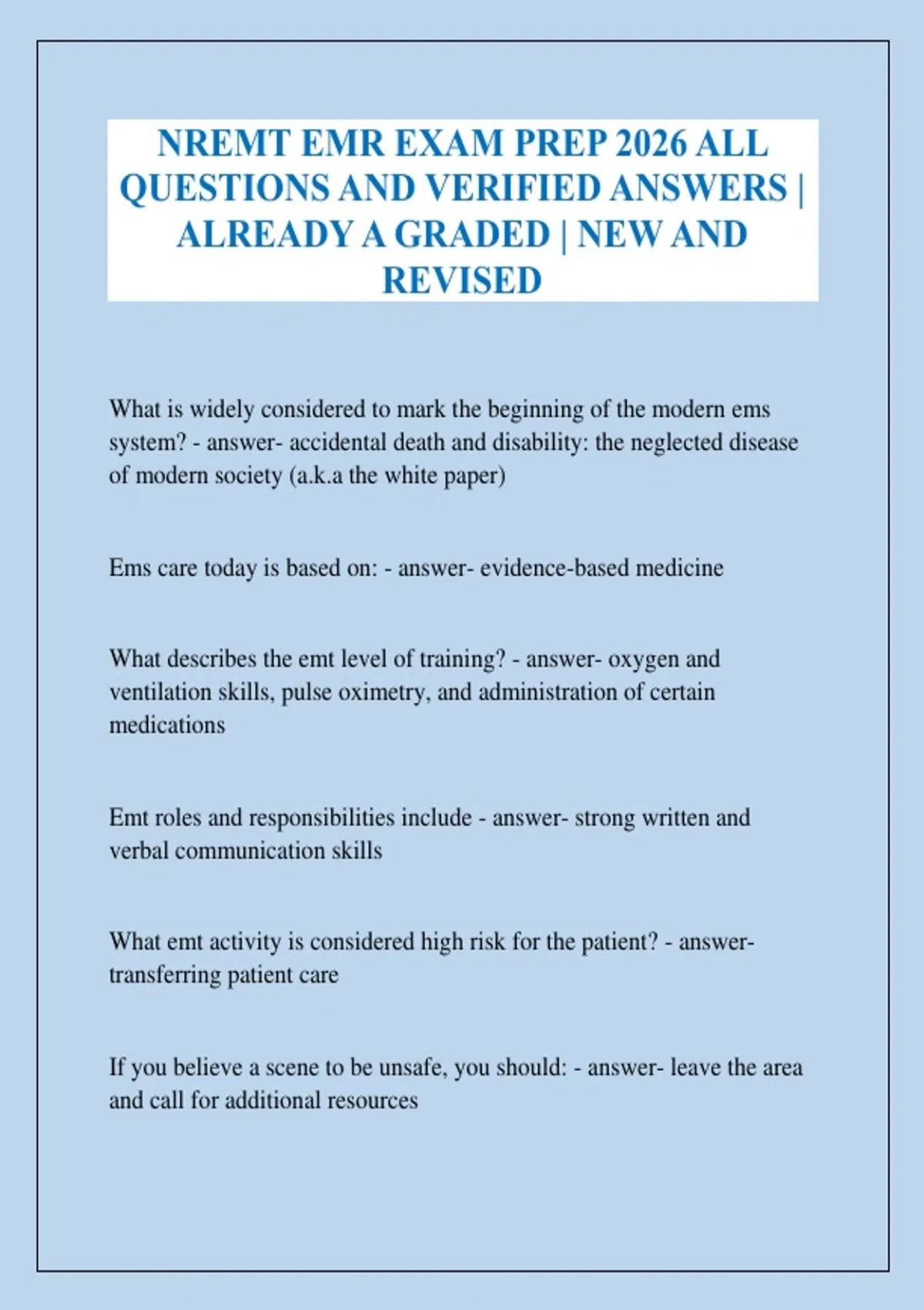 Emt roles and responsibilities include - answer- strong written and