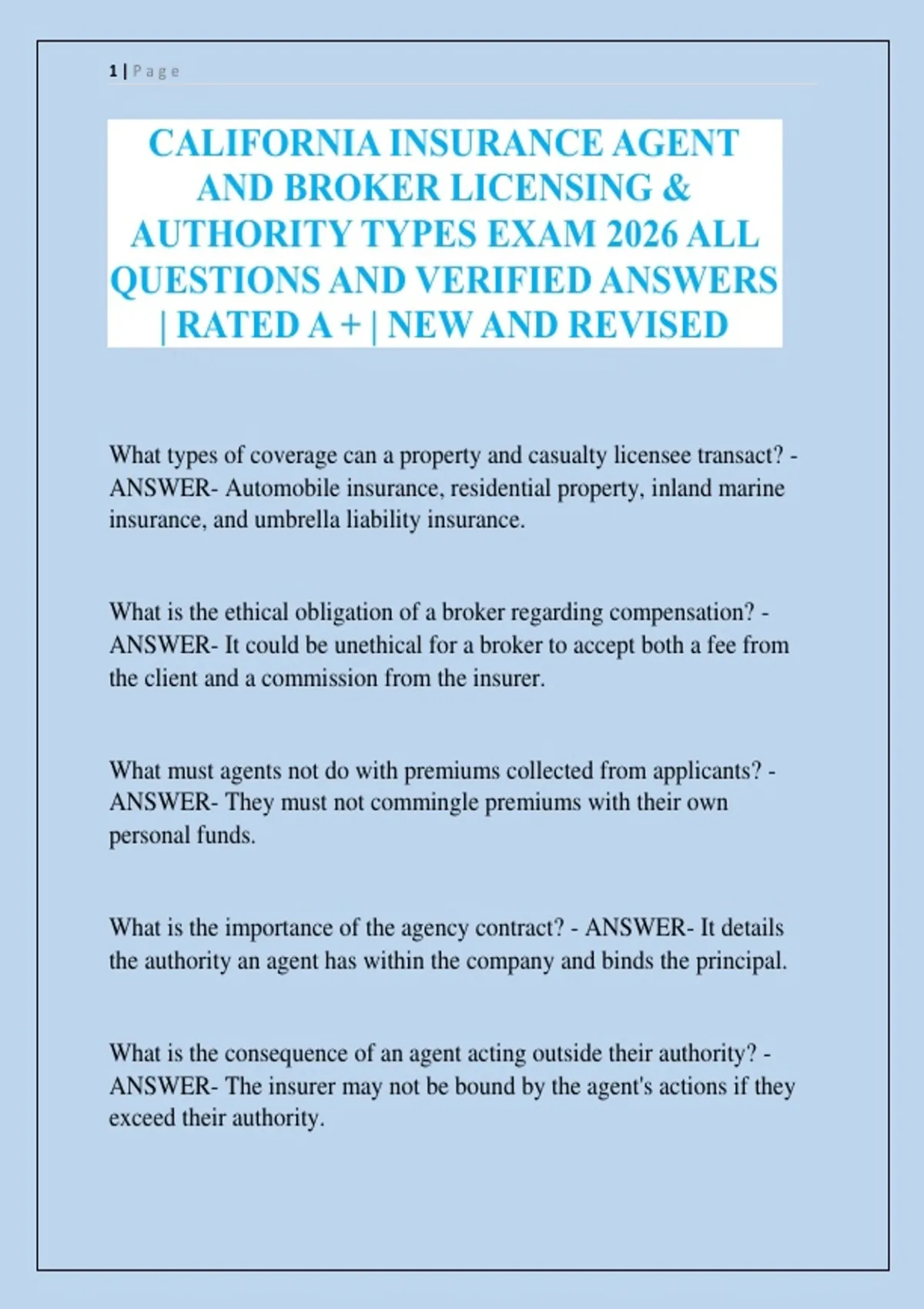 What is a Certified Insurance Agent? - ANSWER- An agent certified to