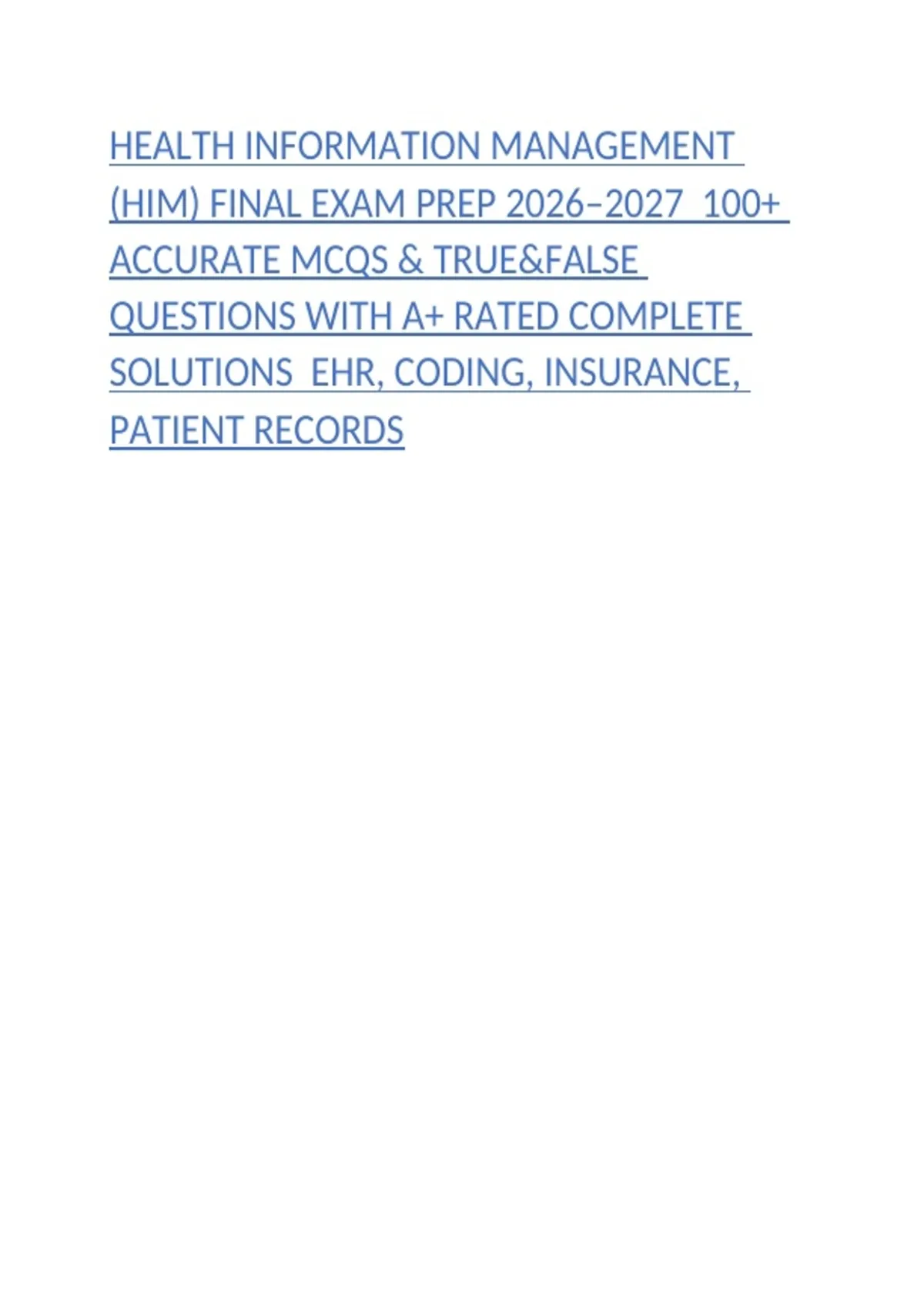(HIM) FINAL EXAM PREP 2026–2027 100+
