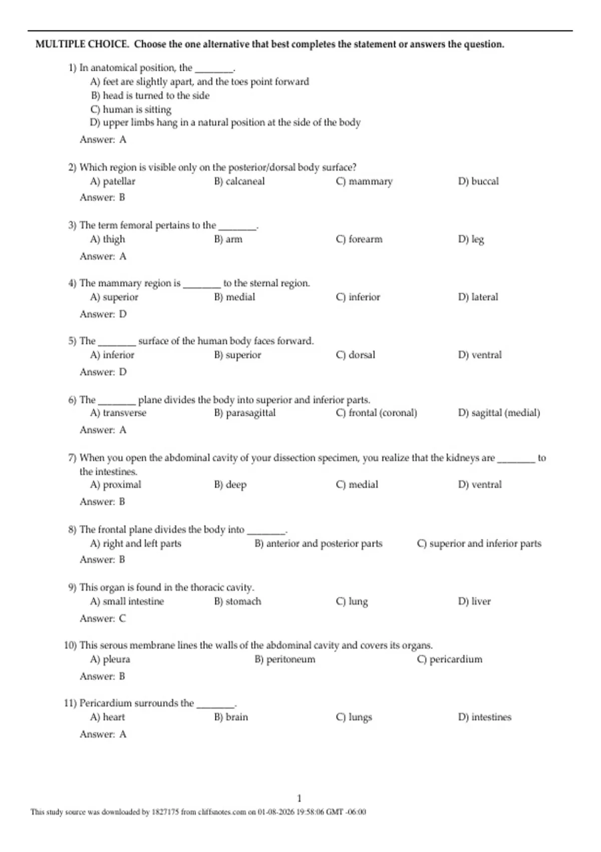 This document contains complete and verified questions & answers for Exercise 1 in NURS B47 (Anatomy), fully aligned with nursing anatomy course objectives, practical exercise requirements, and current nursing curriculum standards. Anatomy Nursing Exam Prep Nursing Anatomy Study Guide Anatomy Exercise Answers Nursing Course Materials 2026 Practical Anatomy Questions Updated for 2026/2027, it covers foundational anatomy concepts, body systems, anatomical terminology, and exercise-based assessment questions commonly used in nursing anatomy courses. Ideal for exercise preparation, course revision, practice testing, and academic success.