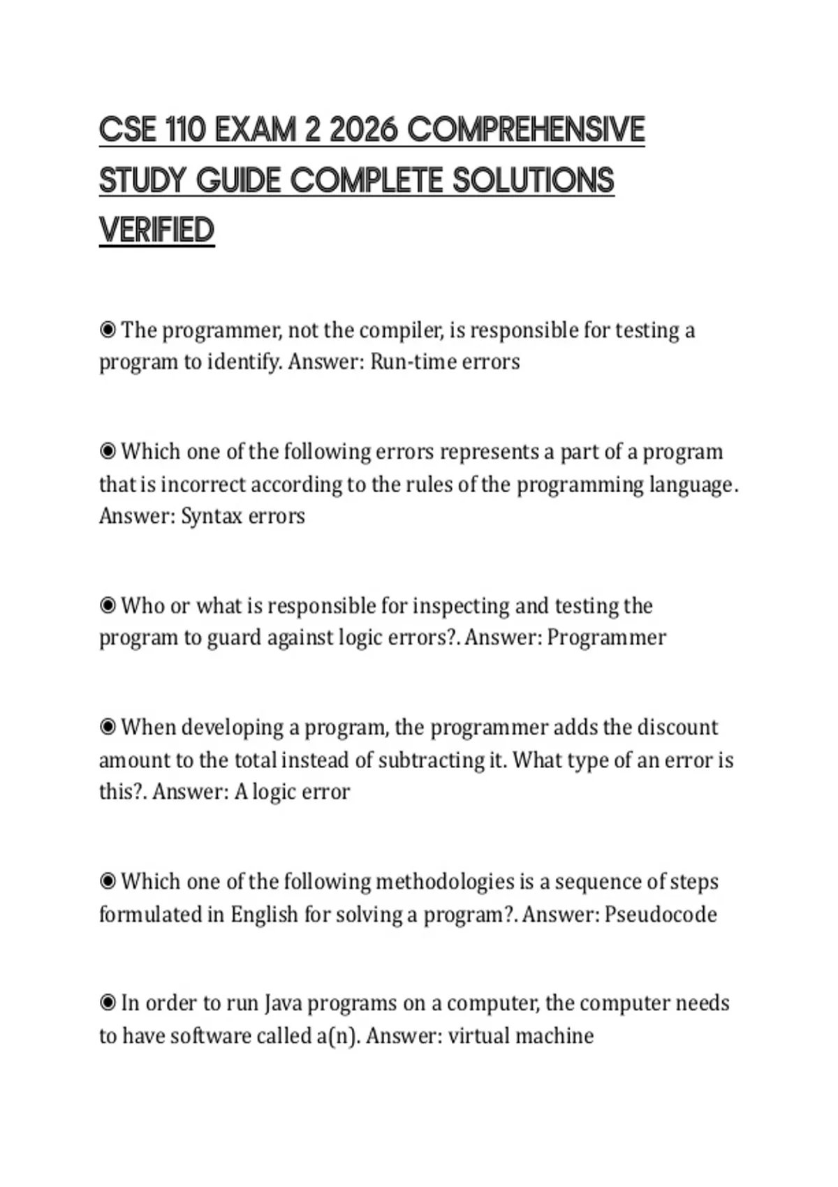 CSE 110 EXAM 2 2026 COMPREHENSIVE