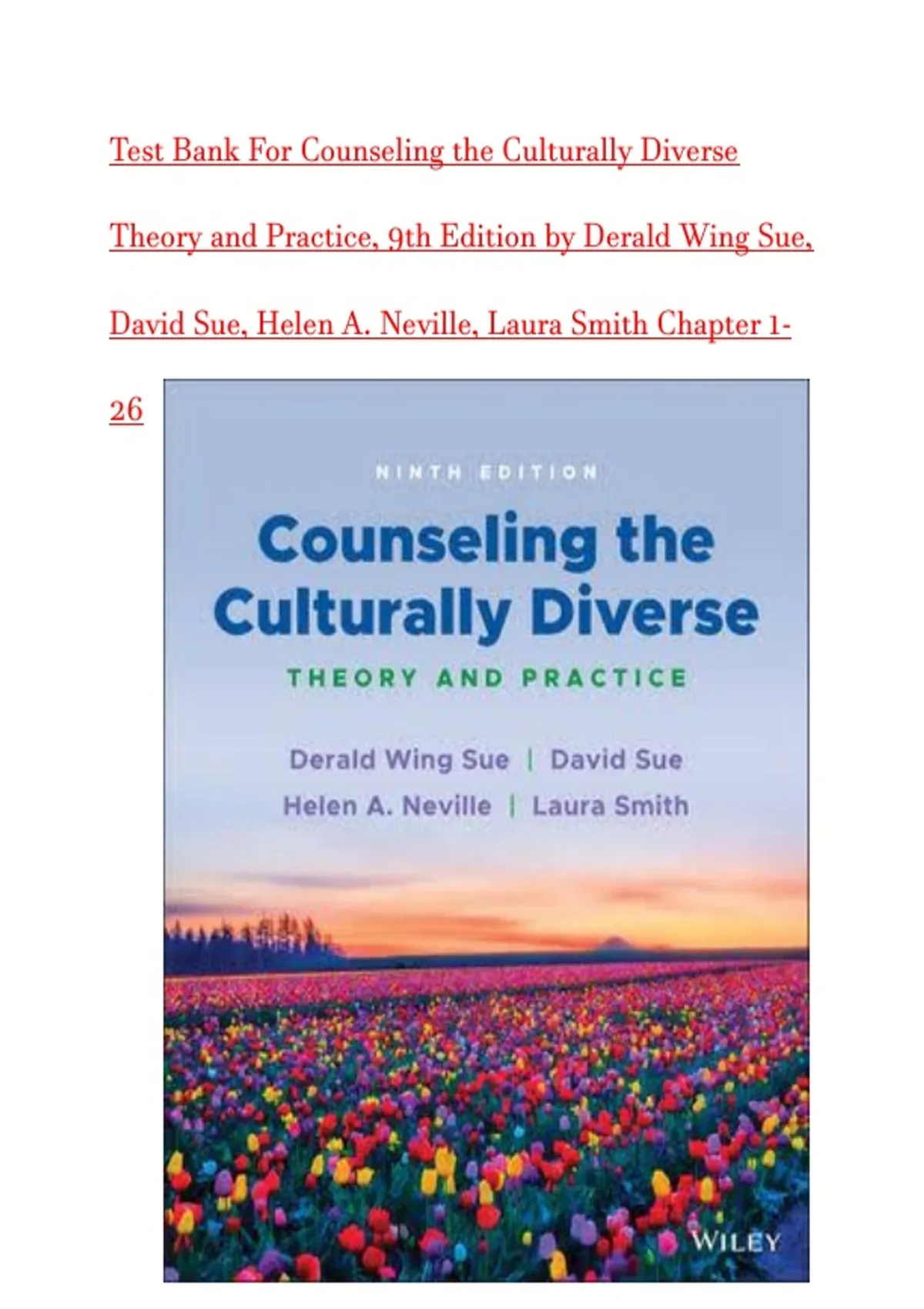 Test Bank For Counseling the Culturally Diverse Theory and Practice, 9th Edition by Derald Wing Sue, David Sue, Helen A. Neville, Laura Smith Chapter 1-26//Best study guide 2026