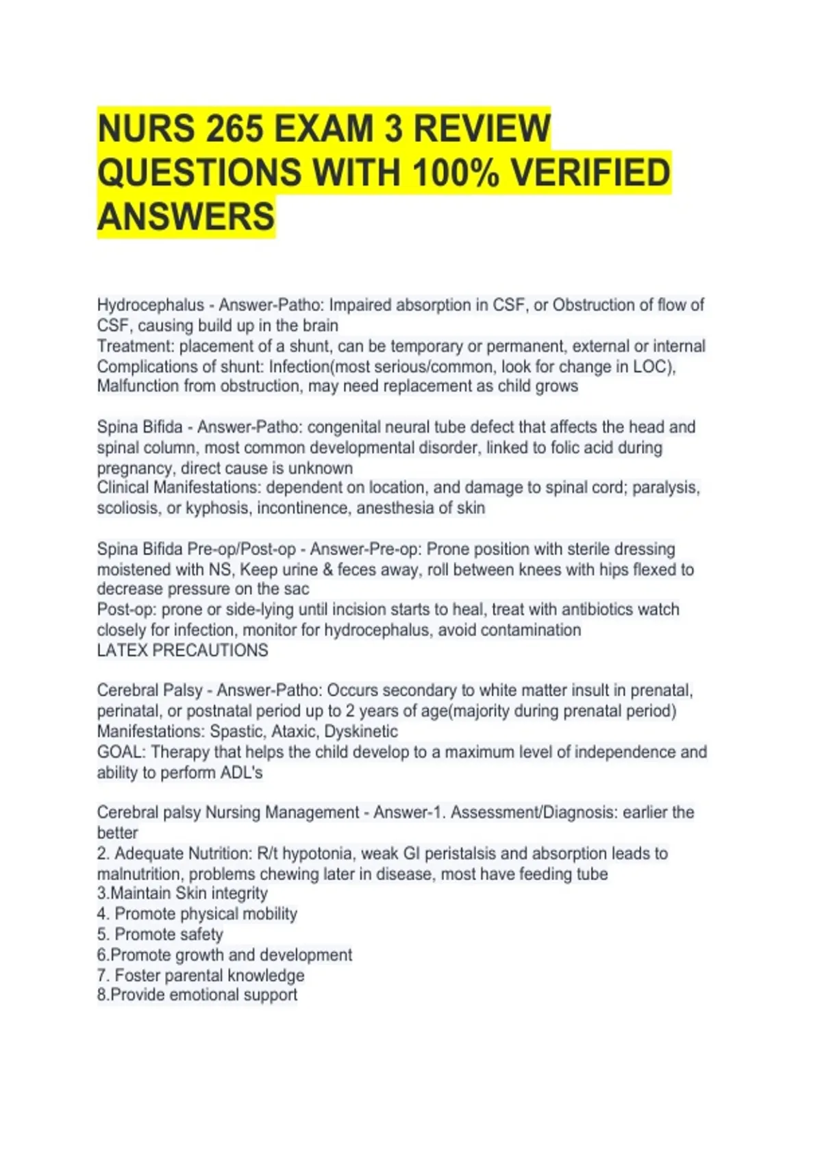 NURS 265 EXAM 3 REVIEW QUESTIONS WITH 100% VERIFIED ANSWERS