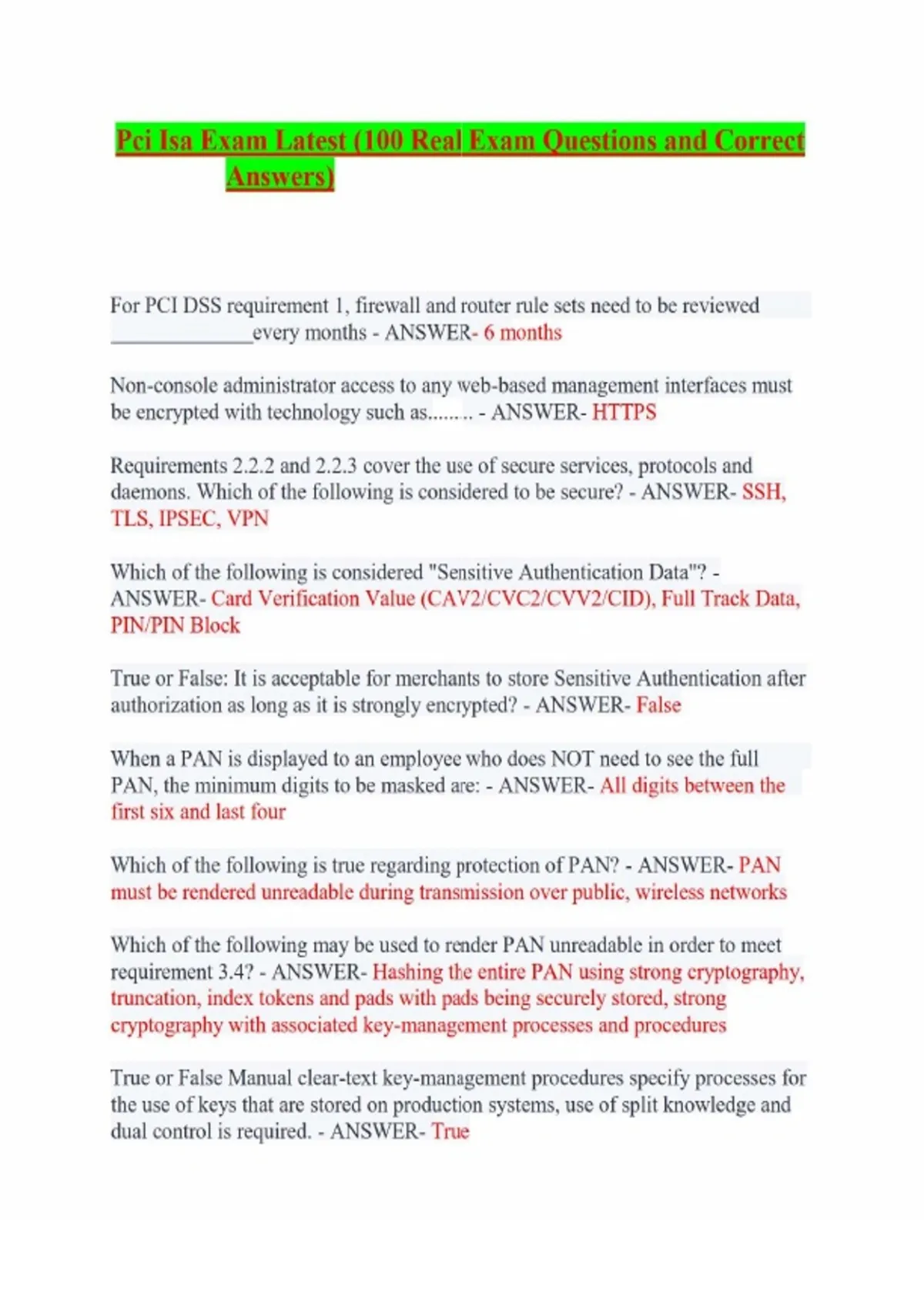 Pci Isa Exam Latest (100 Real Exam Questions and Correct Answers)Pci Isa Exam Latest (100 Real Exam Questions and Correct Answers)