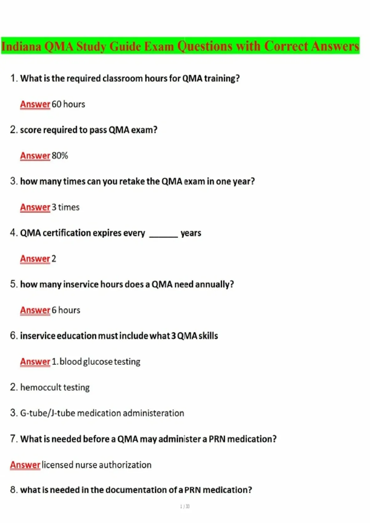 Indiana QMA Study Guide Exam Questions with Correct Answers