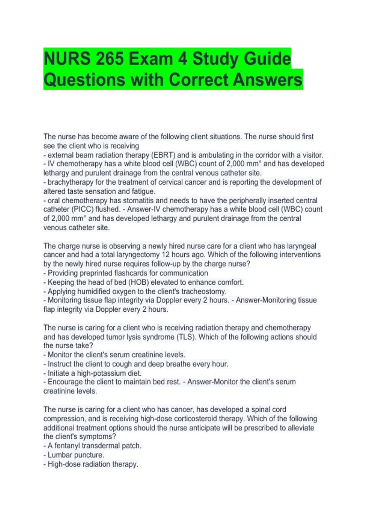 NURS 265 Exam 4 Study Guide