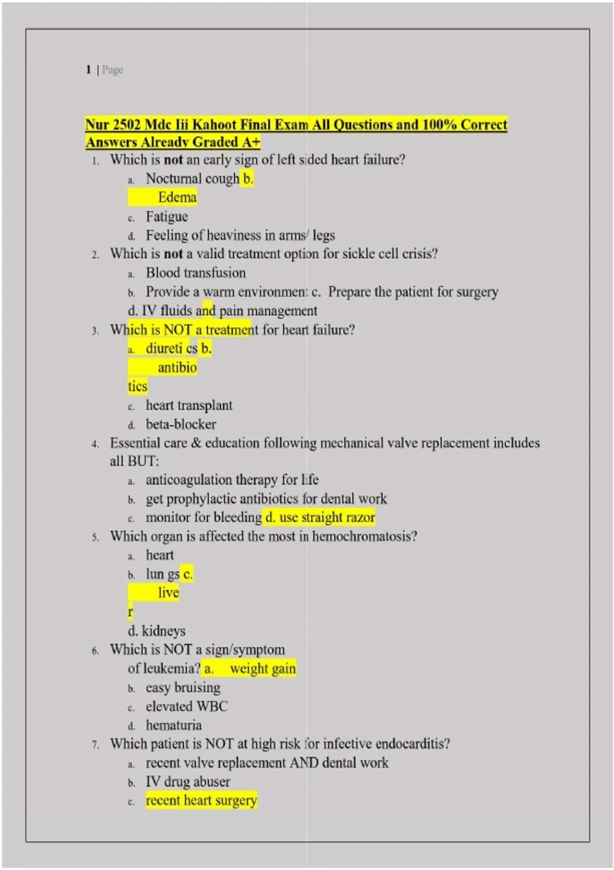 Nur 2502 Mdc Iii Kahoot Final Exam All Questions and 100% Correct Answers Already Graded A+