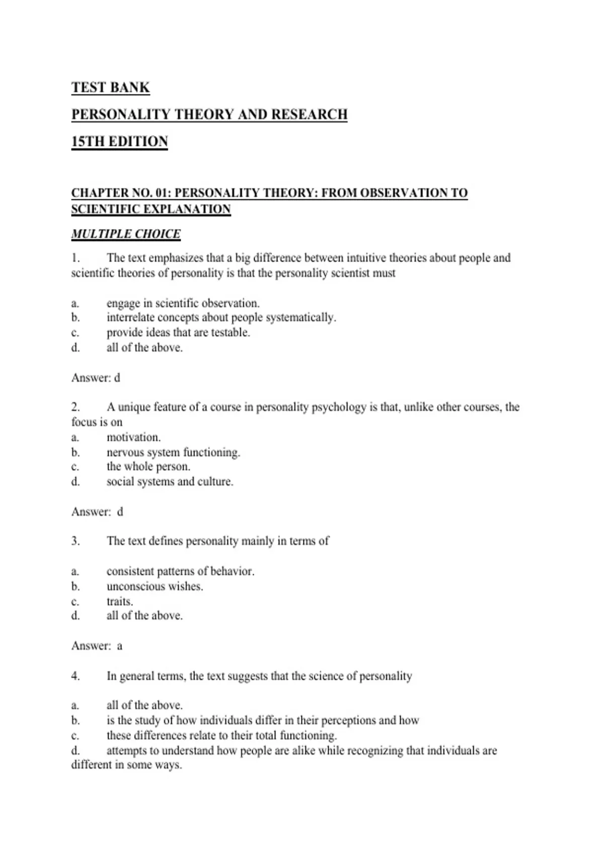 CHAPTER NO. 01: PERSONALITY THEORY: FROM OBSERVATION TO