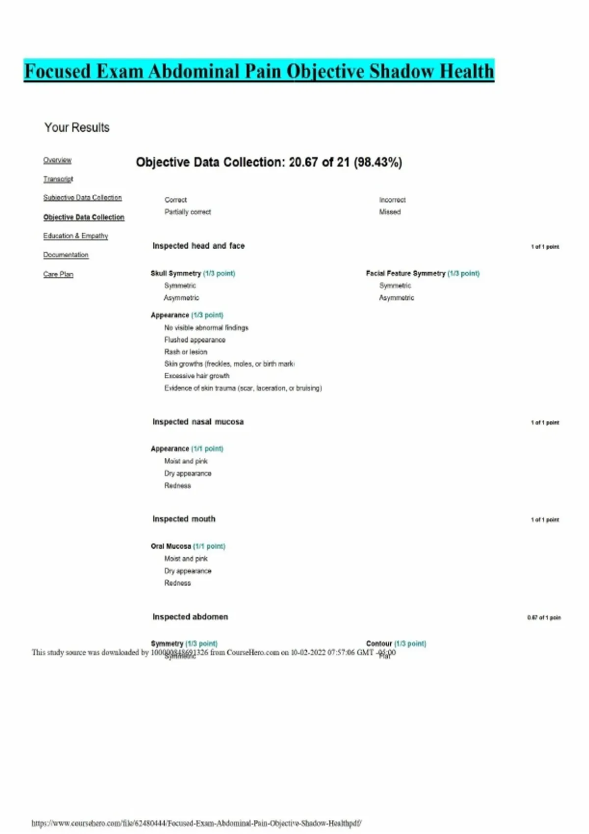 Focused Exam Abdominal Pain Objective Shadow HealthFocused Exam Abdominal Pain Objective Shadow Health