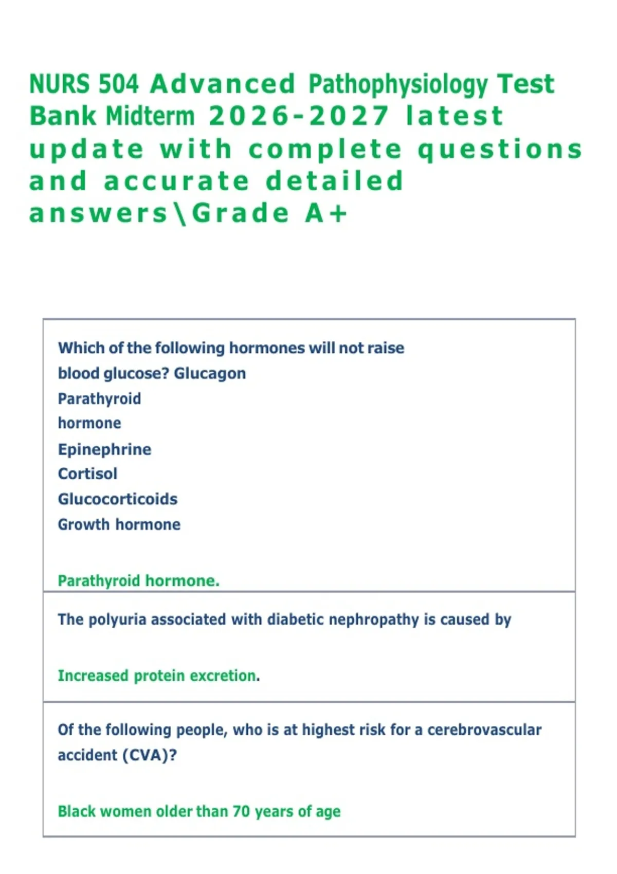 NURS 504 Advanced Pathophysiology Test Bank Midterm latest update with complete questions and accurate detailed answersGrade A+NURS 504 Advanced Pathophysiology Test Bank Midterm latest update with complete questions and accurate detailed answersGrade A+NURS 504 Advanced Pathophysiology Test Bank Midterm latest update with complete questions and accurate detailed answersGrade A+NURS 504 Advanced Pathophysiology Test Bank Midterm latest update with complete questions and accurate detailed answersGrade A+NURS 504 Advanced Pathophysiology Test Bank Midterm latest update with complete questions and accurate detailed answersGrade A+NURS 504 Advanced Pathophysiology Test Bank Midterm latest update with complete questions and accurate detailed answersGrade A+