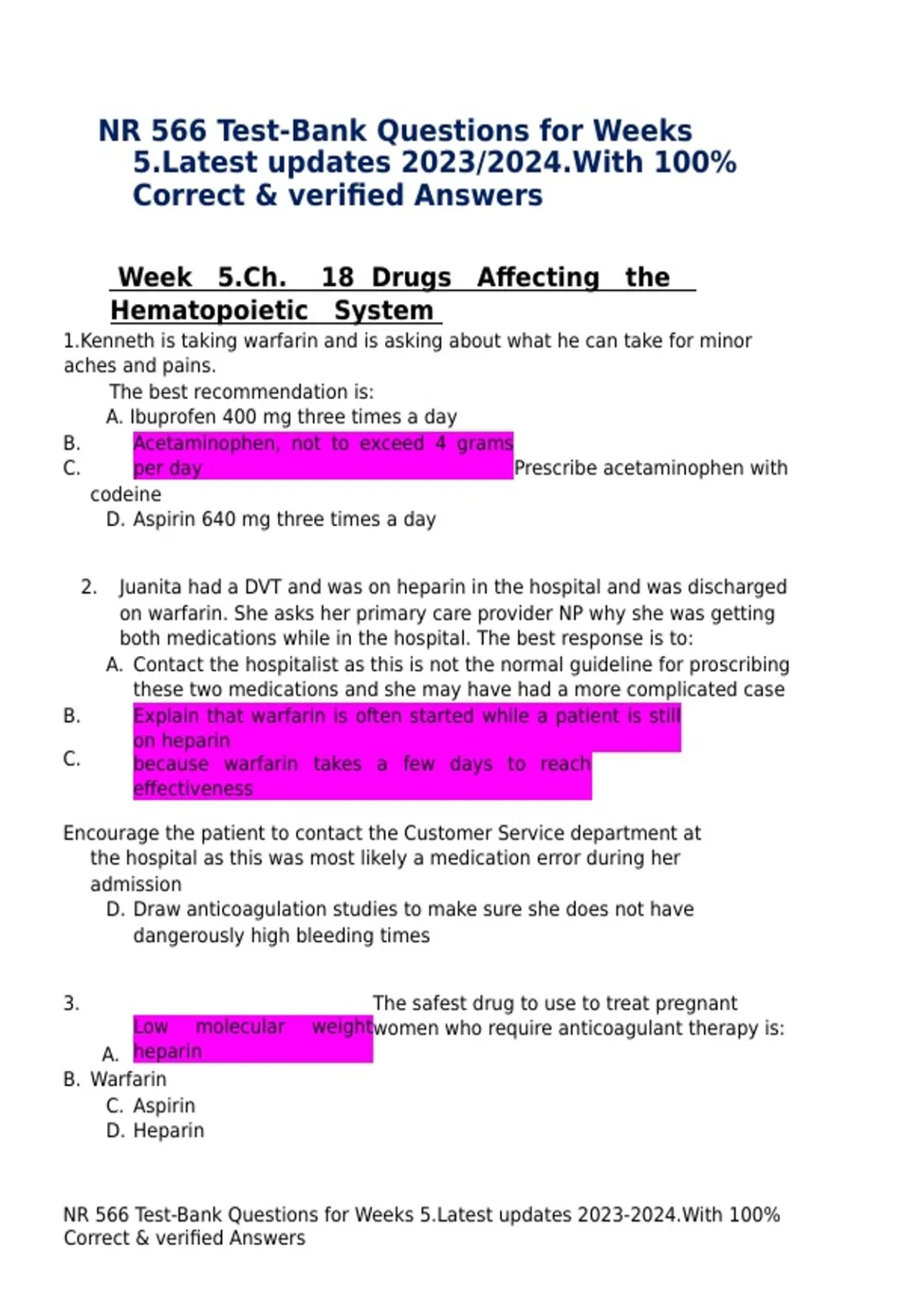 NR 566 Test-Bank Questions for Weeks 5.Latest updates 2023-2024.With 100%