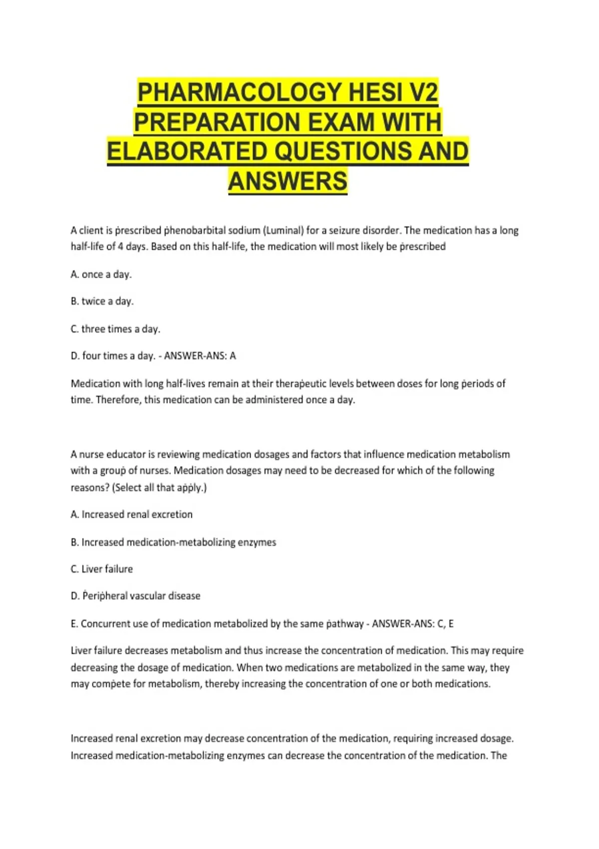 A nurse educator is reviewing medication dosages and factors that influence medication metabolism