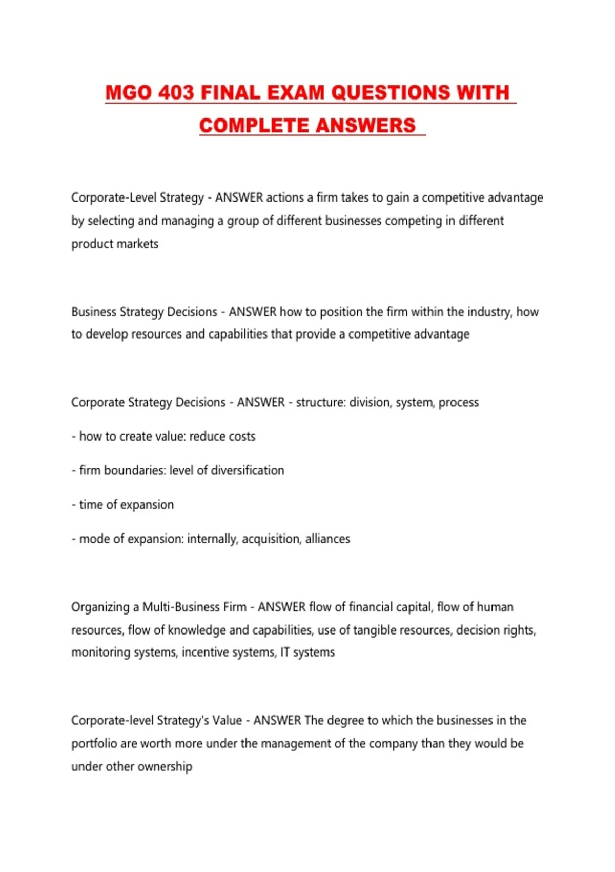MGO 403 FINAL EXAM QUESTIONS WITH