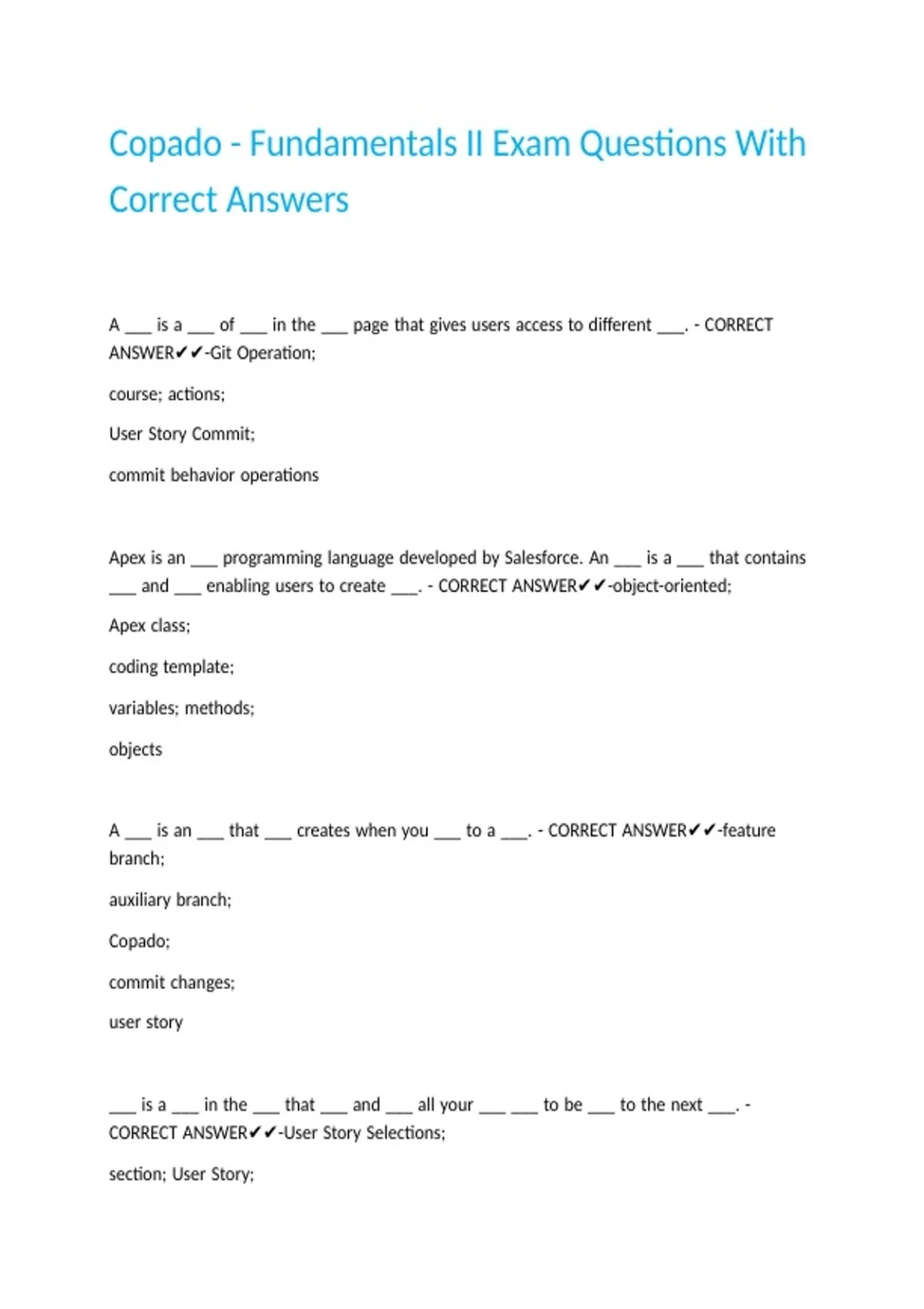 Copado - Fundamentals II Exam Questions With