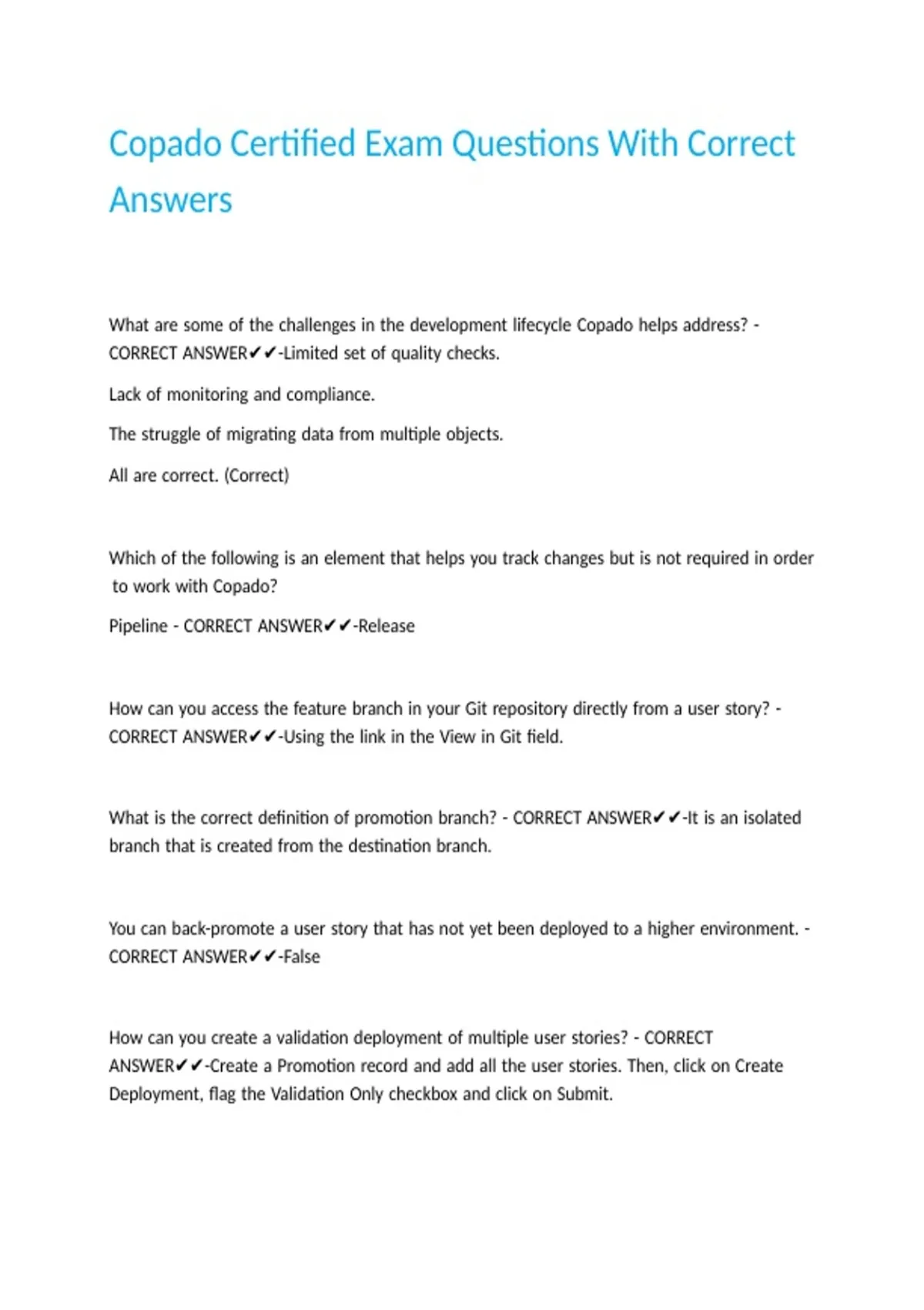 Copado Certified Exam Questions With Correct Answers.