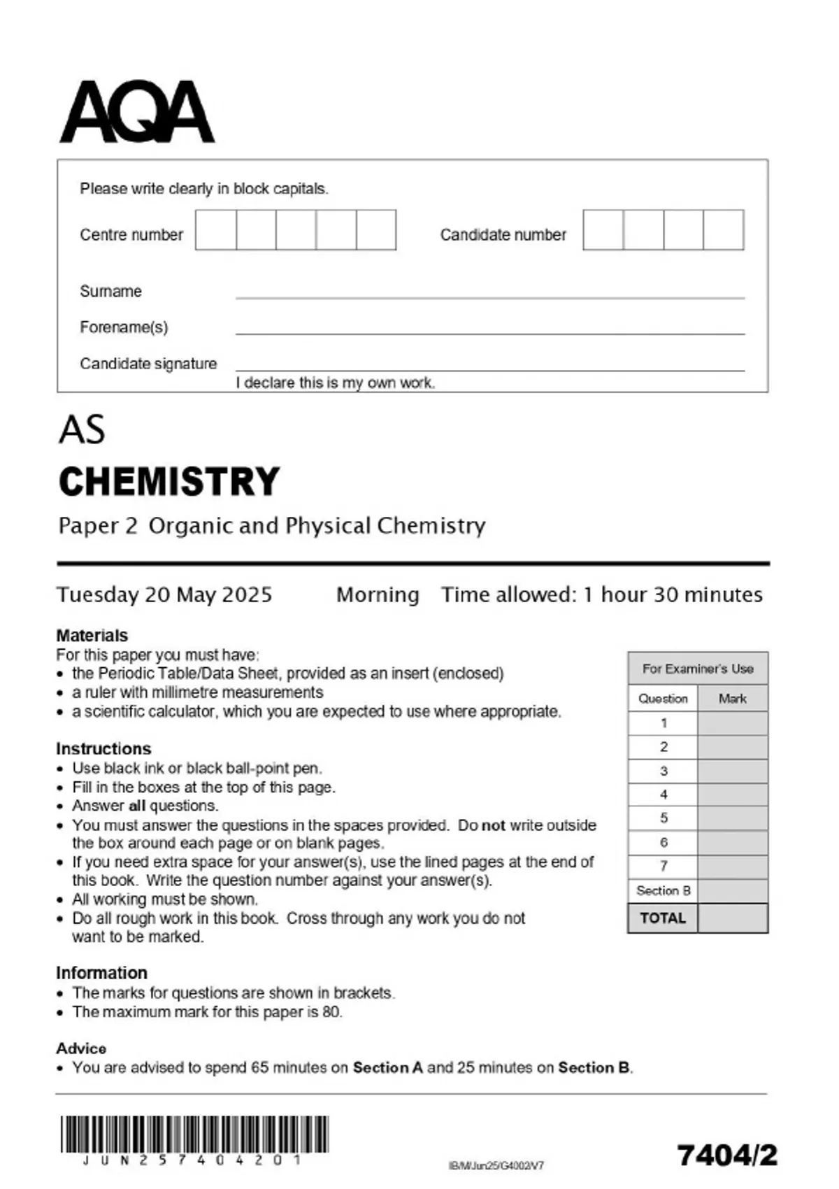 AS LEVEL AQA 2025 CHEMISTRY PAPER 2 7404-2 QUESTION PAPER AND MARK SCHEME MERGED
