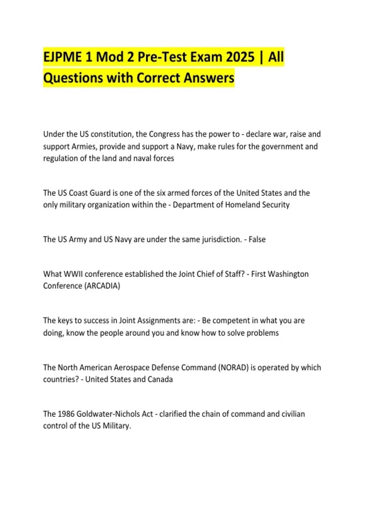 EJPME 1 Mod 2 Pre-Test Exam 2025 | All