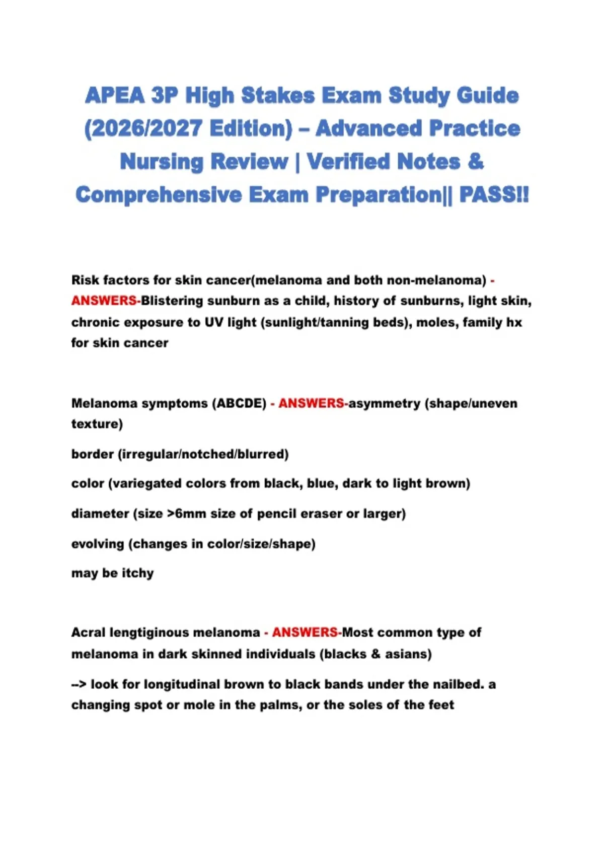 APEA 3P High Stakes Exam Study Guide (2026/2027 Edition) – Advanced Practice Nursing Review | Verified Notes & Comprehensive Exam Preparation|| PASS!!