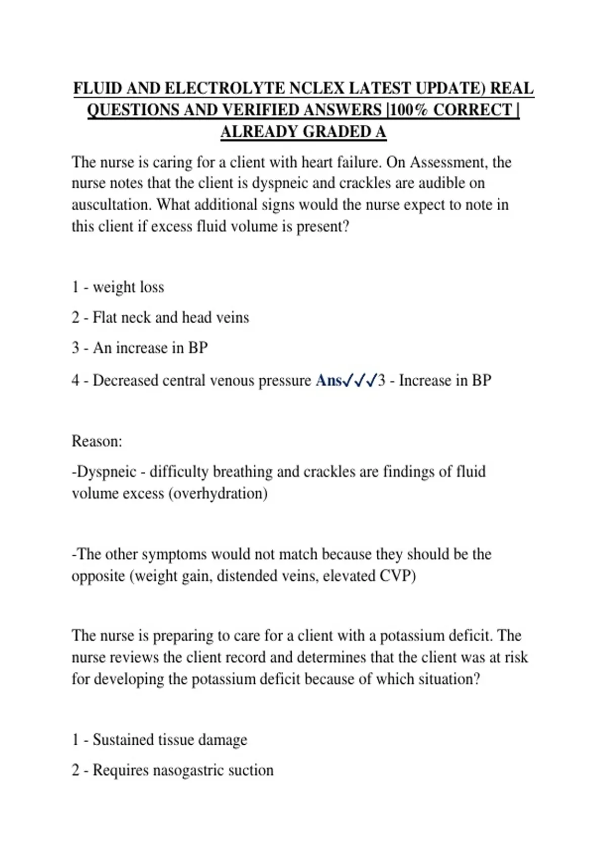 4 - Is taking potassium-retaining diuretics Ans✓✓✓2 - Required