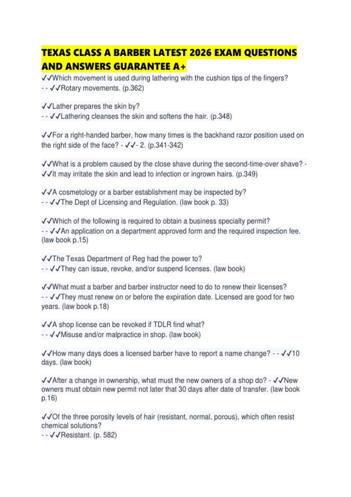 TEXAS CLASS A BARBER LATEST 2026 EXAM QUESTIONS AND ANSWERS GUARANTEE A.pdf