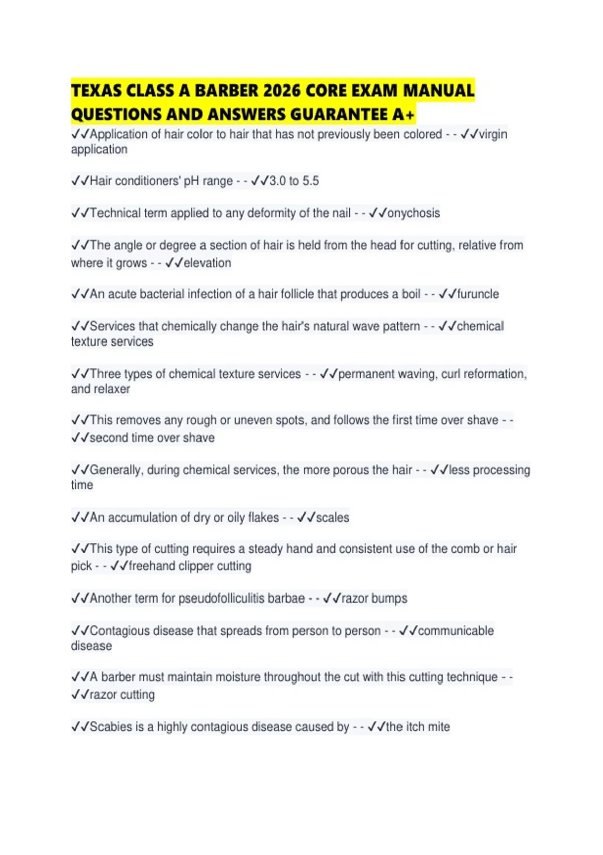 TEXAS CLASS A BARBER 2026 CORE EXAM MANUAL QUESTIONS AND ANSWERS GUARANTEE A.pdf