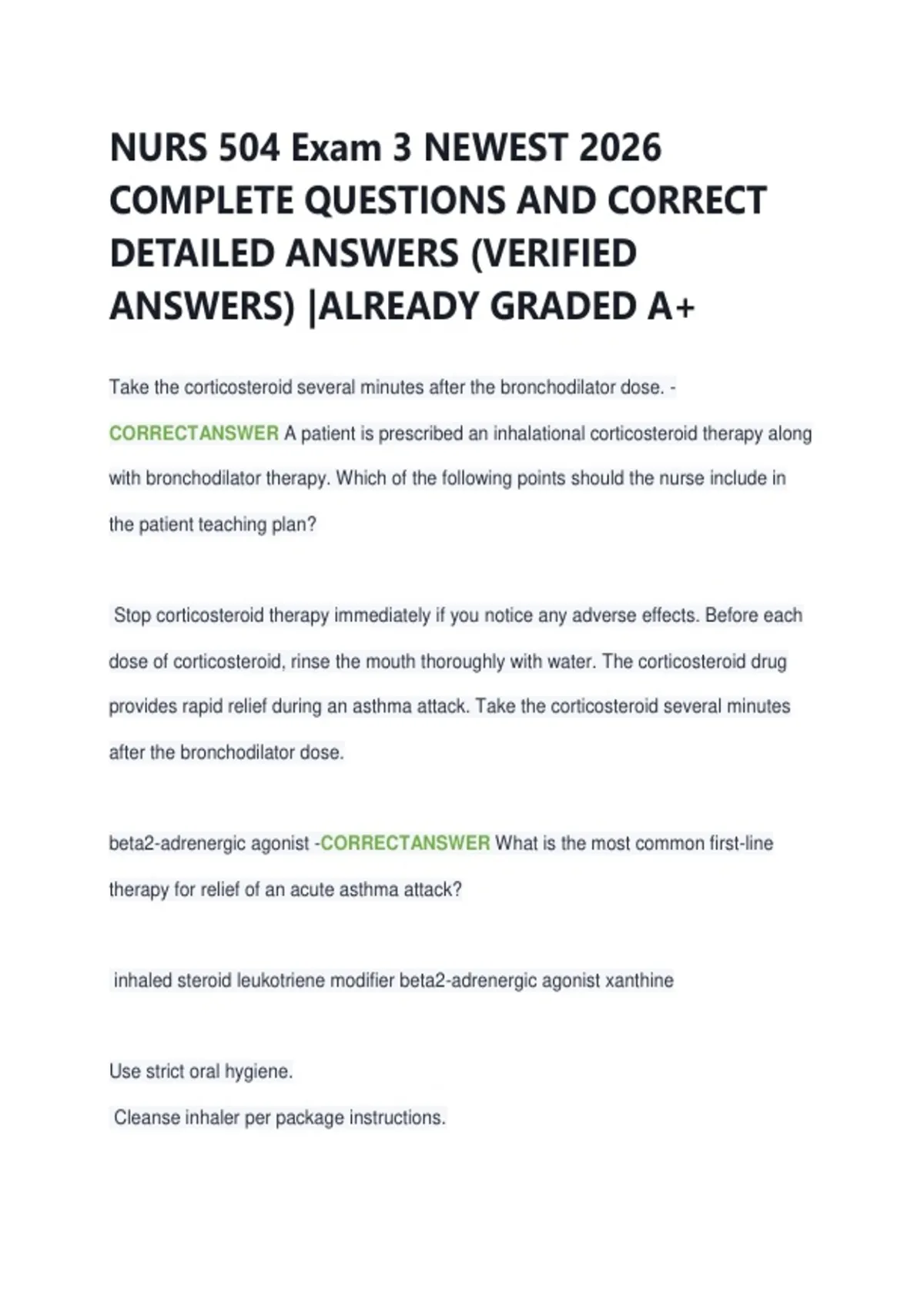 CORRECTANSWER A patient is prescribed an inhalational corticosteroid therapy along