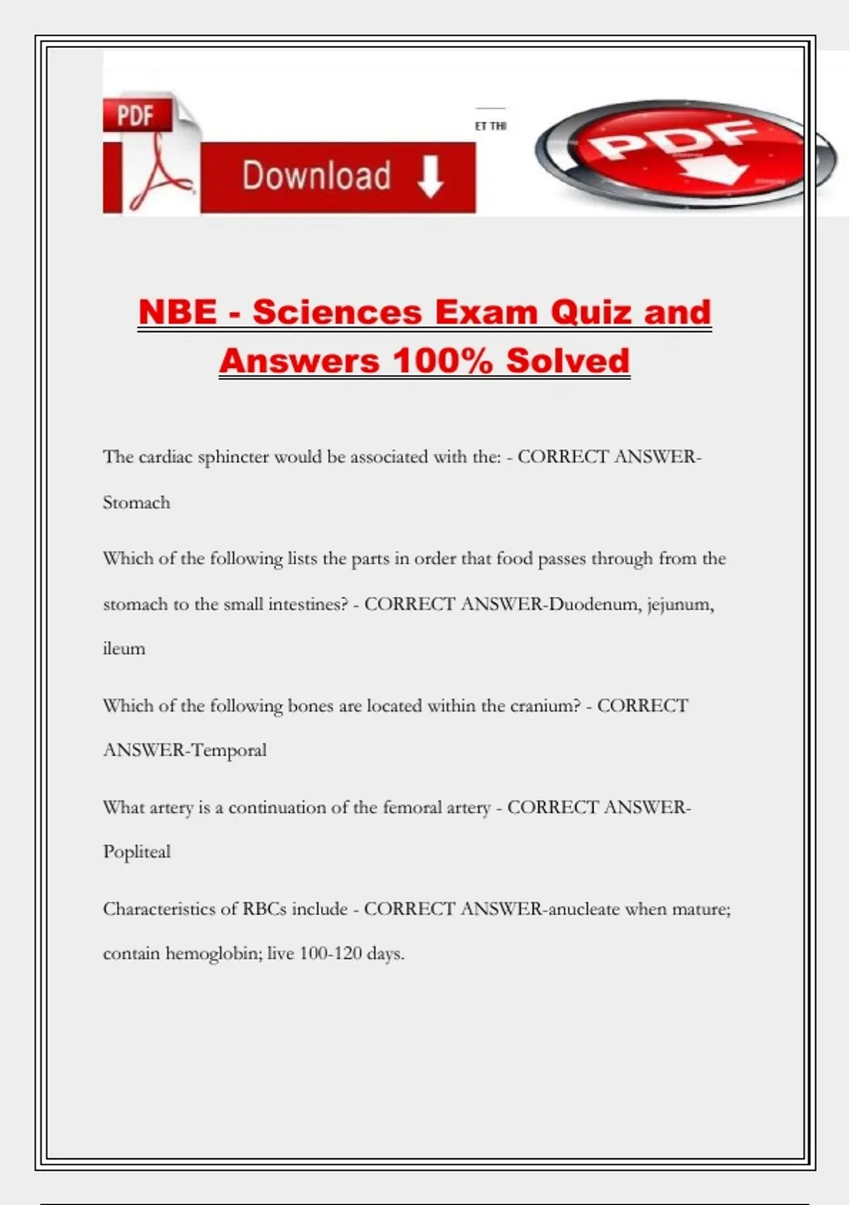 NBE - Sciences Exam Quiz and