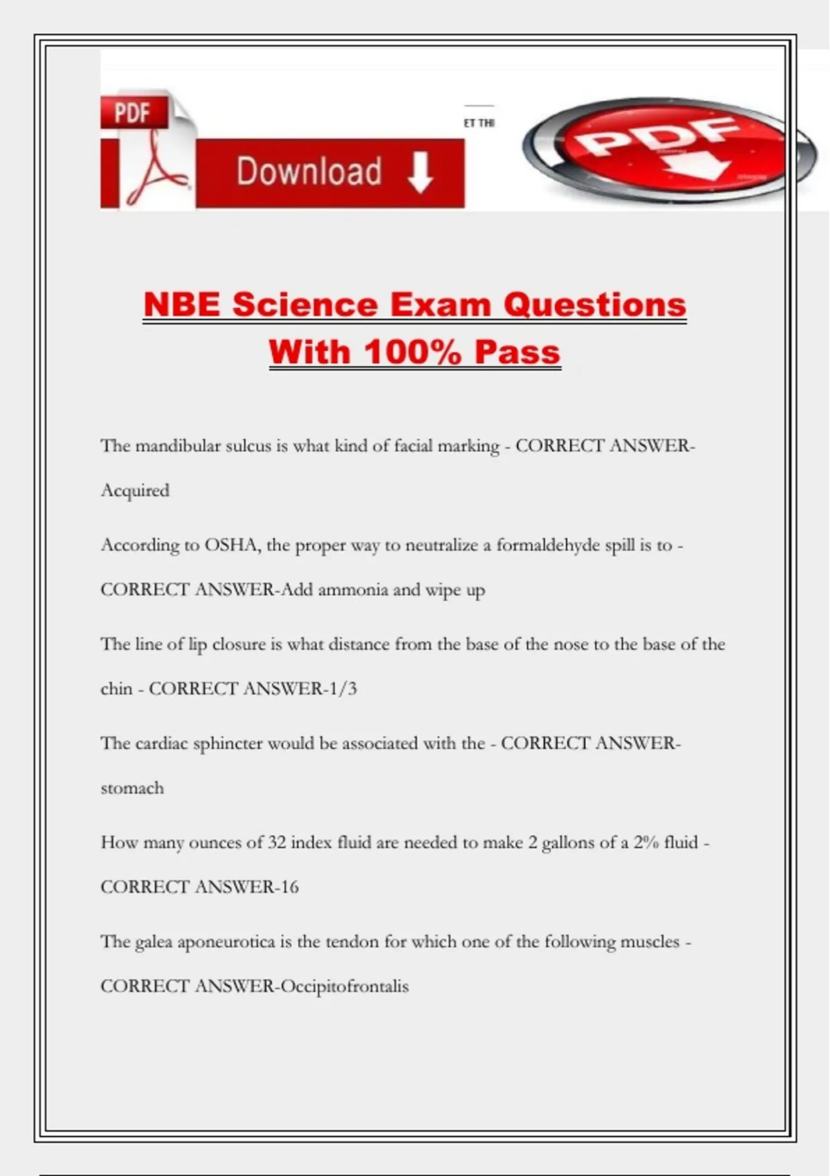 NBE Science Exam Questions With 100% Pass