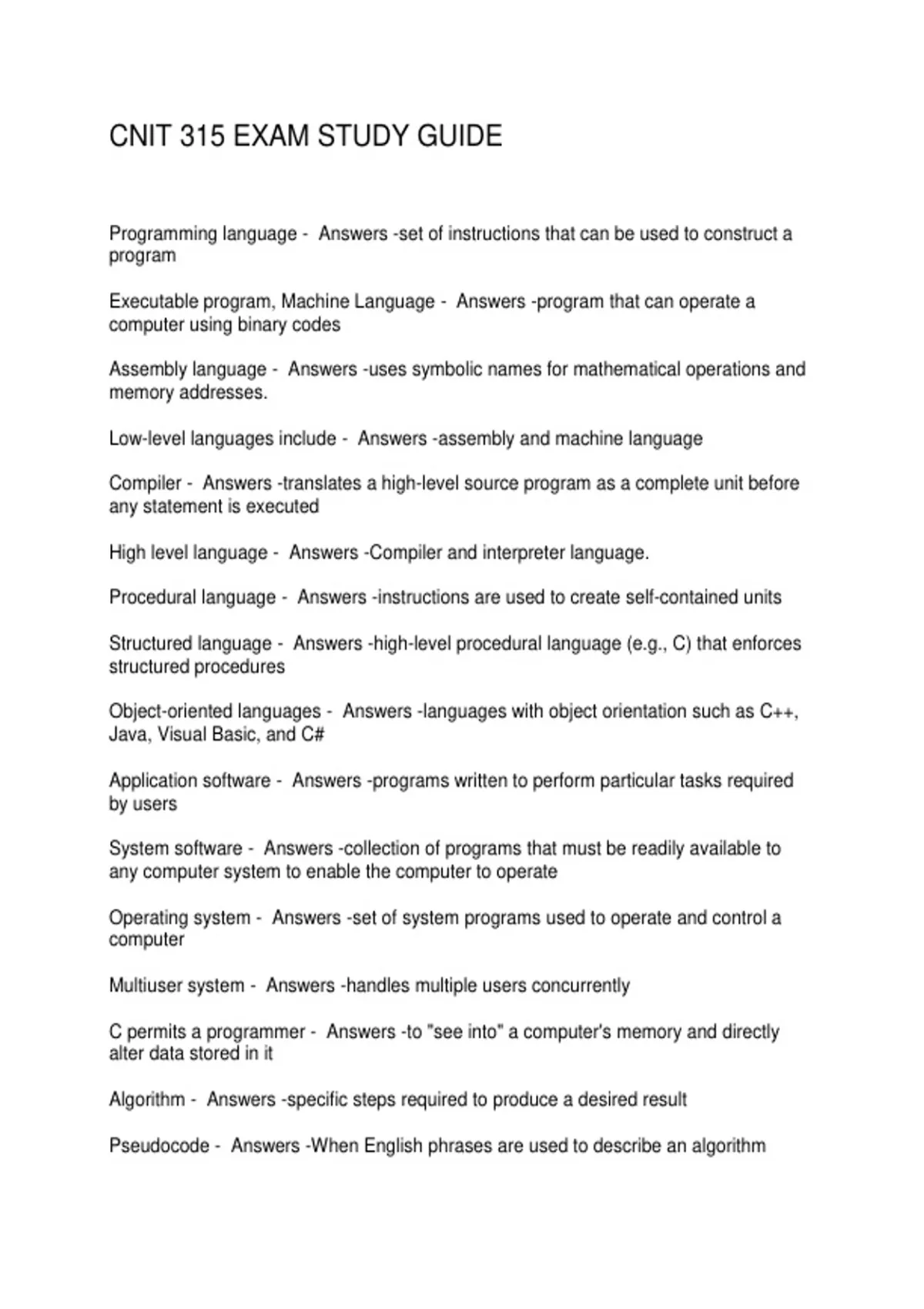 Programming language - Answers -set of instructions that can be used to construct a