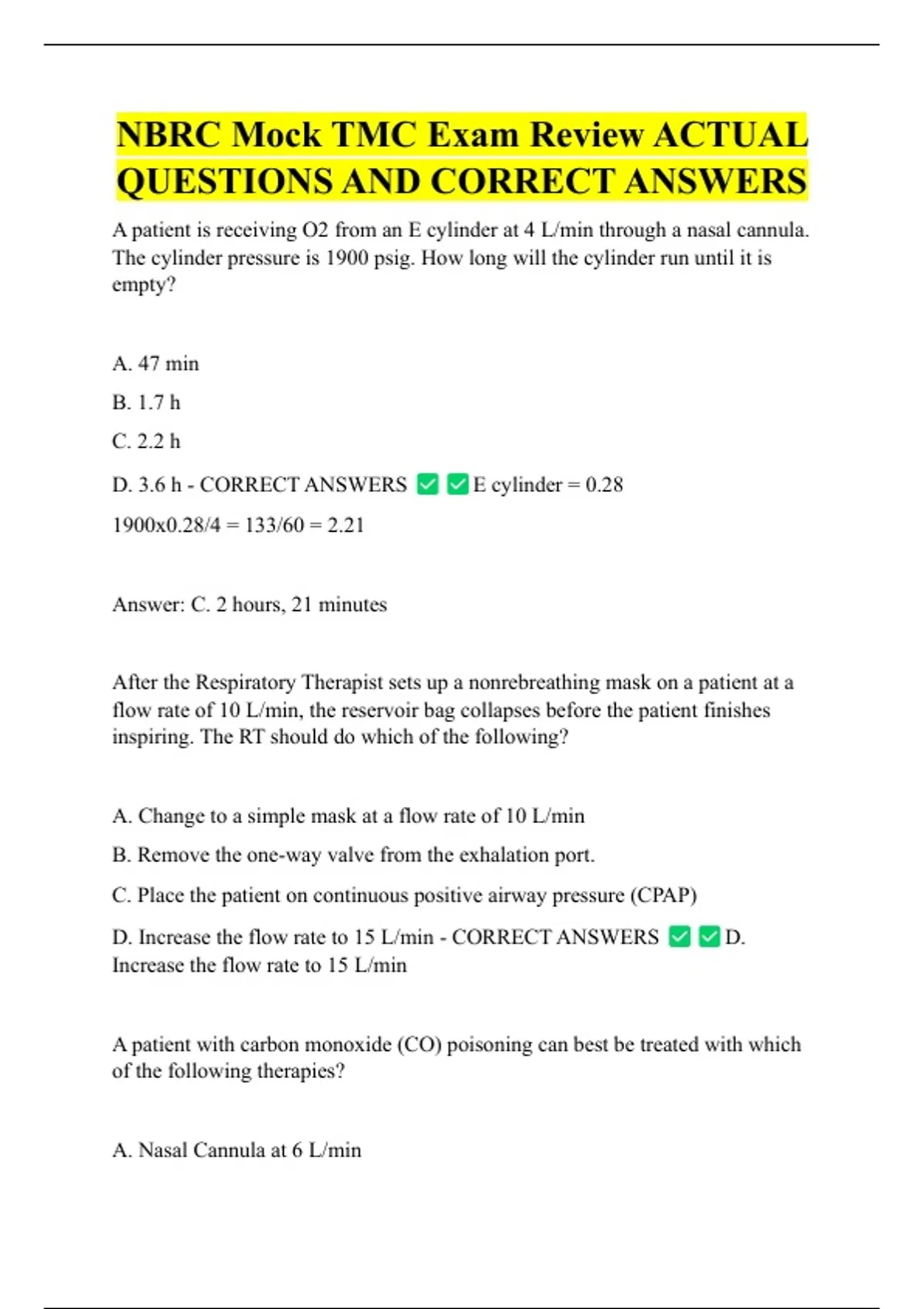 NBRC Mock TMC Exam Review ACTUAL QUESTIONS AND CORRECT ANSWERS