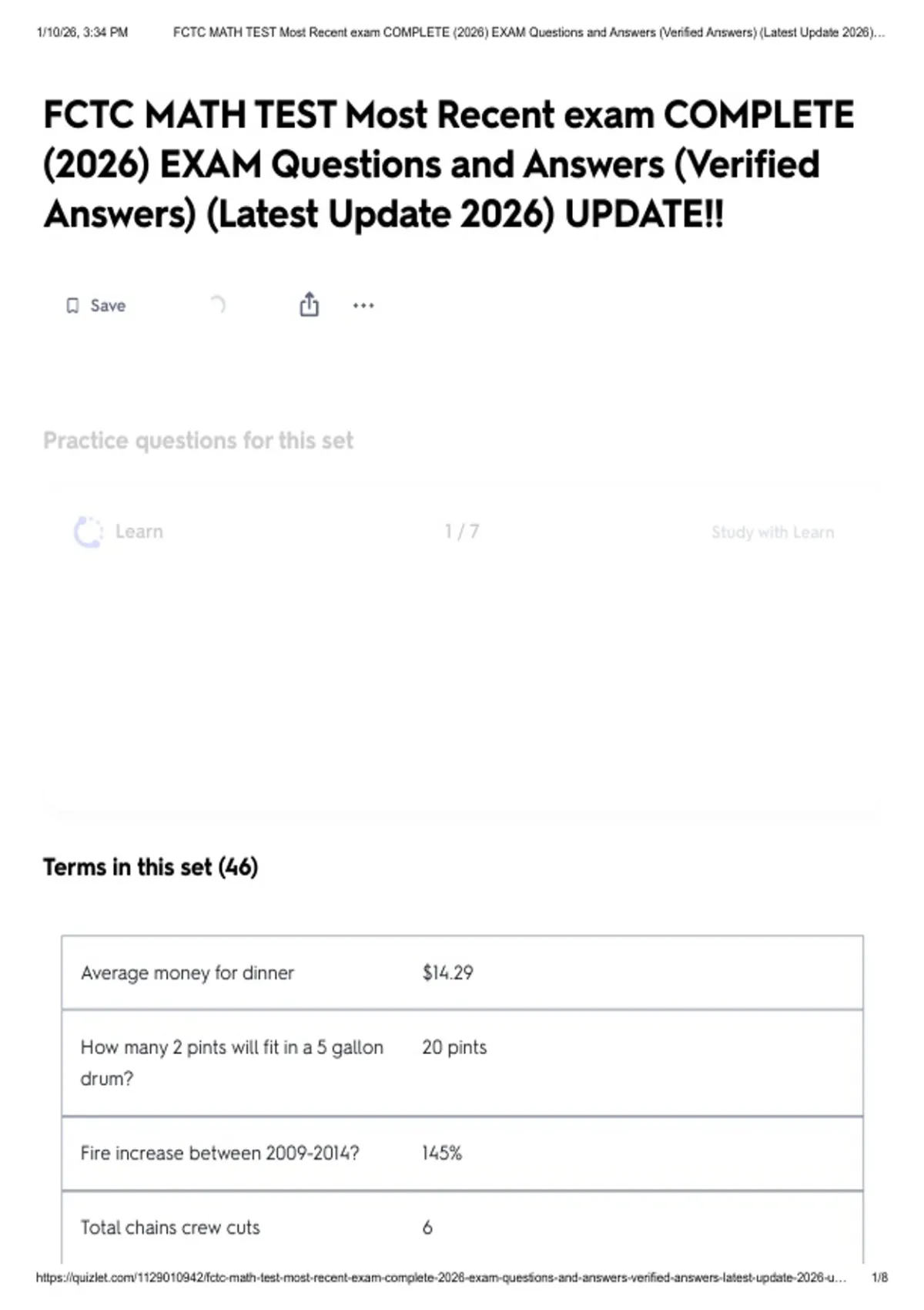 1/10/26, 3:34 PM FCTC MATH TEST Most Recent exam COMPLETE (2026) EXAM Questions and Answers (Verified Answers) (Latest Update 2026)…
