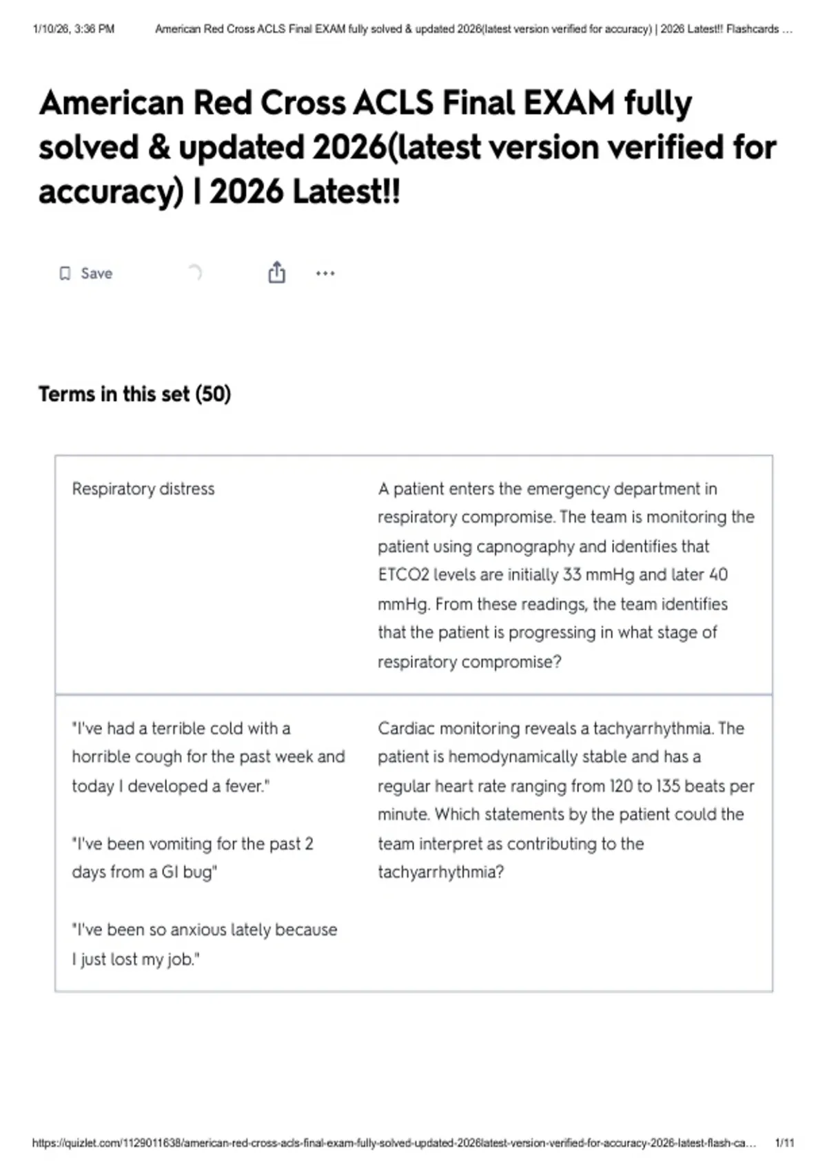 , 1/10/26, 3:36 PM American Red Cross ACLS Final EXAM fully solved & updated 2026(latest version verified for accuracy) | 2026 Latest!! Flashcards …