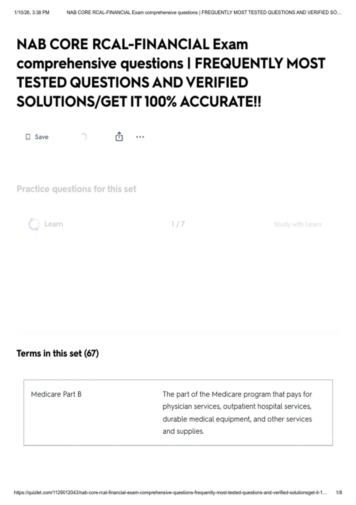 , 1/10/26, 3:38 PM NAB CORE RCAL-FINANCIAL Exam comprehensive questions | FREQUENTLY MOST TESTED QUESTIONS AND VERIFIED SO…