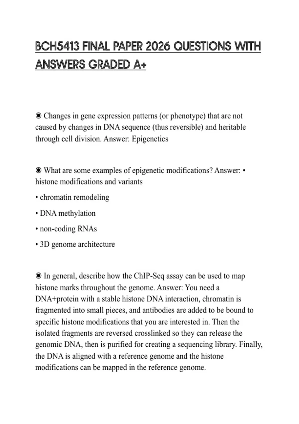 BCH5413 FINAL PAPER 2026 QUESTIONS WITH ANSWERS GRADED A+
