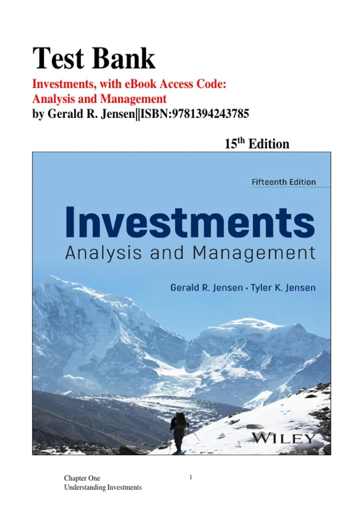 This comprehensive Test Bank for Investments: Analysis and Management, 15th Edition by Charles P. Jones and Gerald R. Jensen is an essential digital resource for both students and instructors. It covers all textbook chapters (1-14) and includes hundreds of multiple-choice, true/false, short-answer, essay, and problem-solving questions—each with verified answers, difficulty ratings, and topic references. This test bank is ideal for exam preparation, homework assignments, and self-assessment, providing clear solutions for key topics such as portfolio theory, market efficiency, common stock valuation, fixed-income and derivative securities, market analysis, and industry analysis. It offers full support for the 15th edition’s curriculum and is perfect for finance, business, and investment courses at university and professional levels.