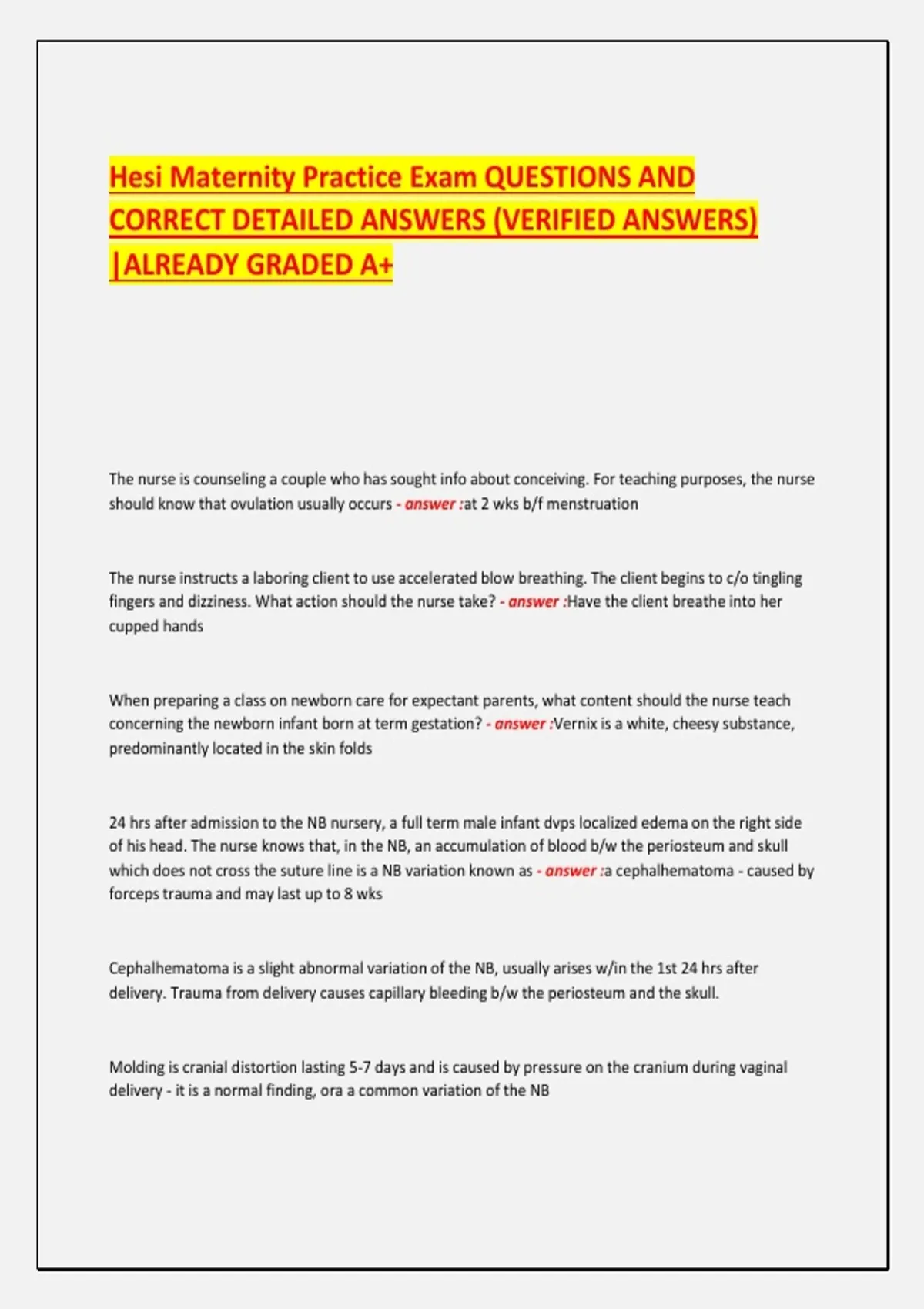 CORRECT DETAILED ANSWERS (VERIFIED ANSWERS)