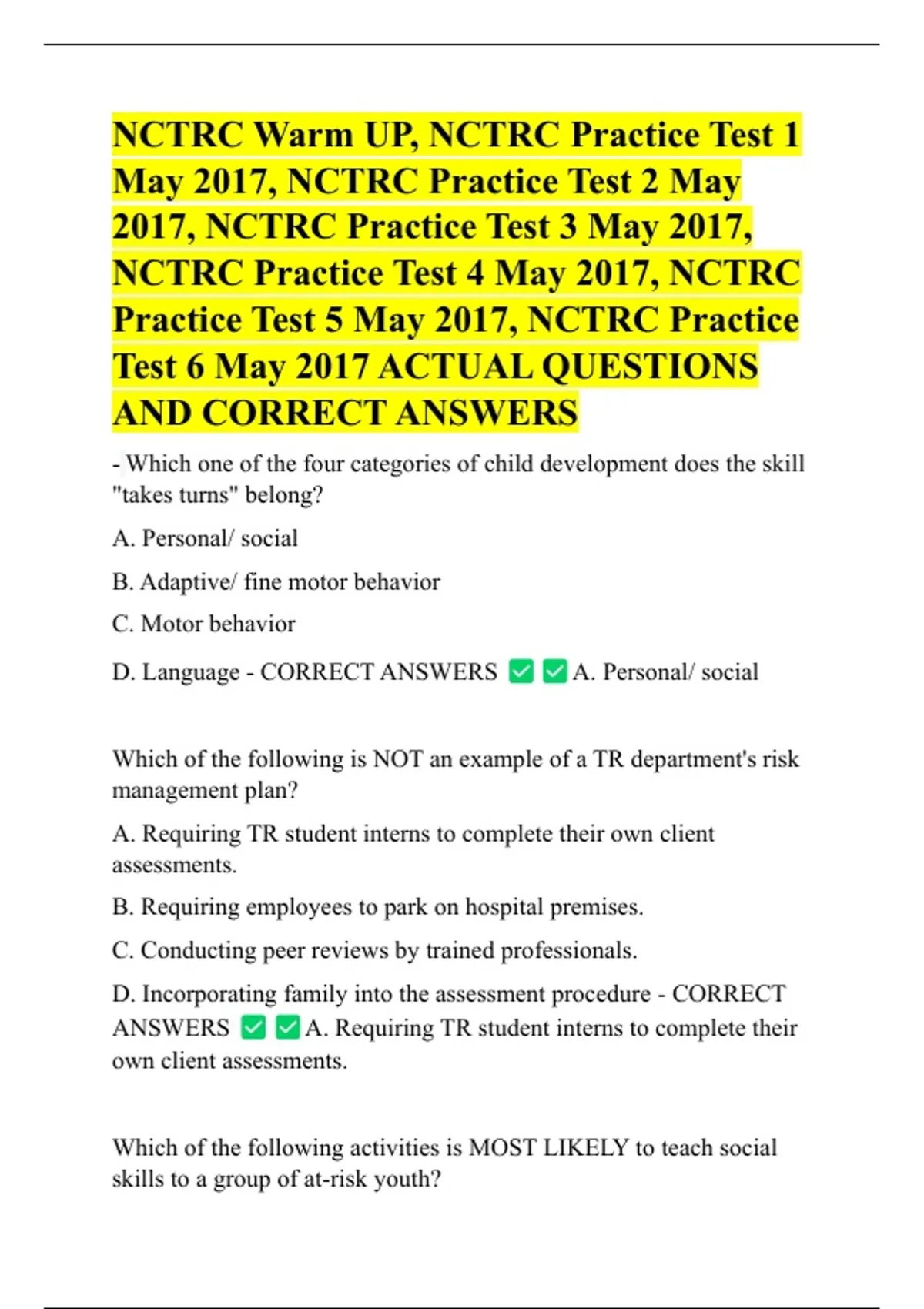 NCTRC Warm UP, NCTRC Practice Test ACTUAL QUESTIONS AND CORRECT ANSWERS