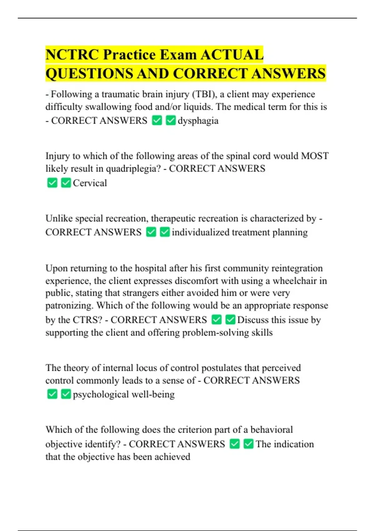 NCTRC Practice Exam ACTUAL QUESTIONS AND CORRECT ANSWERS