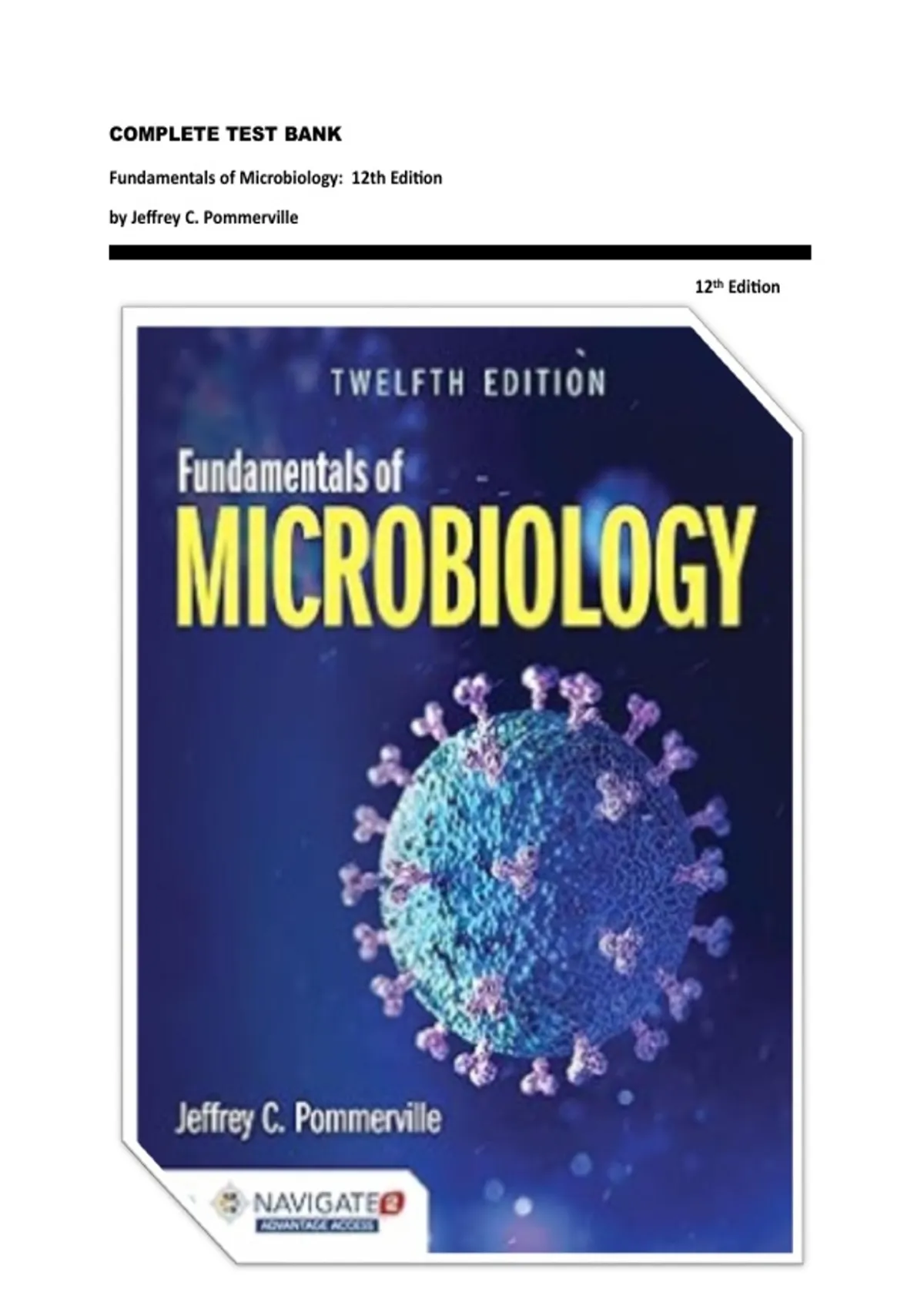COMPLETE TEST BANK Fundamentals of Microbiology: 12th Edition by Jeffrey C. Pommerville COMPLETE TEST BANK Fundamentals of Microbiology: 12th Edition by Jeffrey C. Pommerville