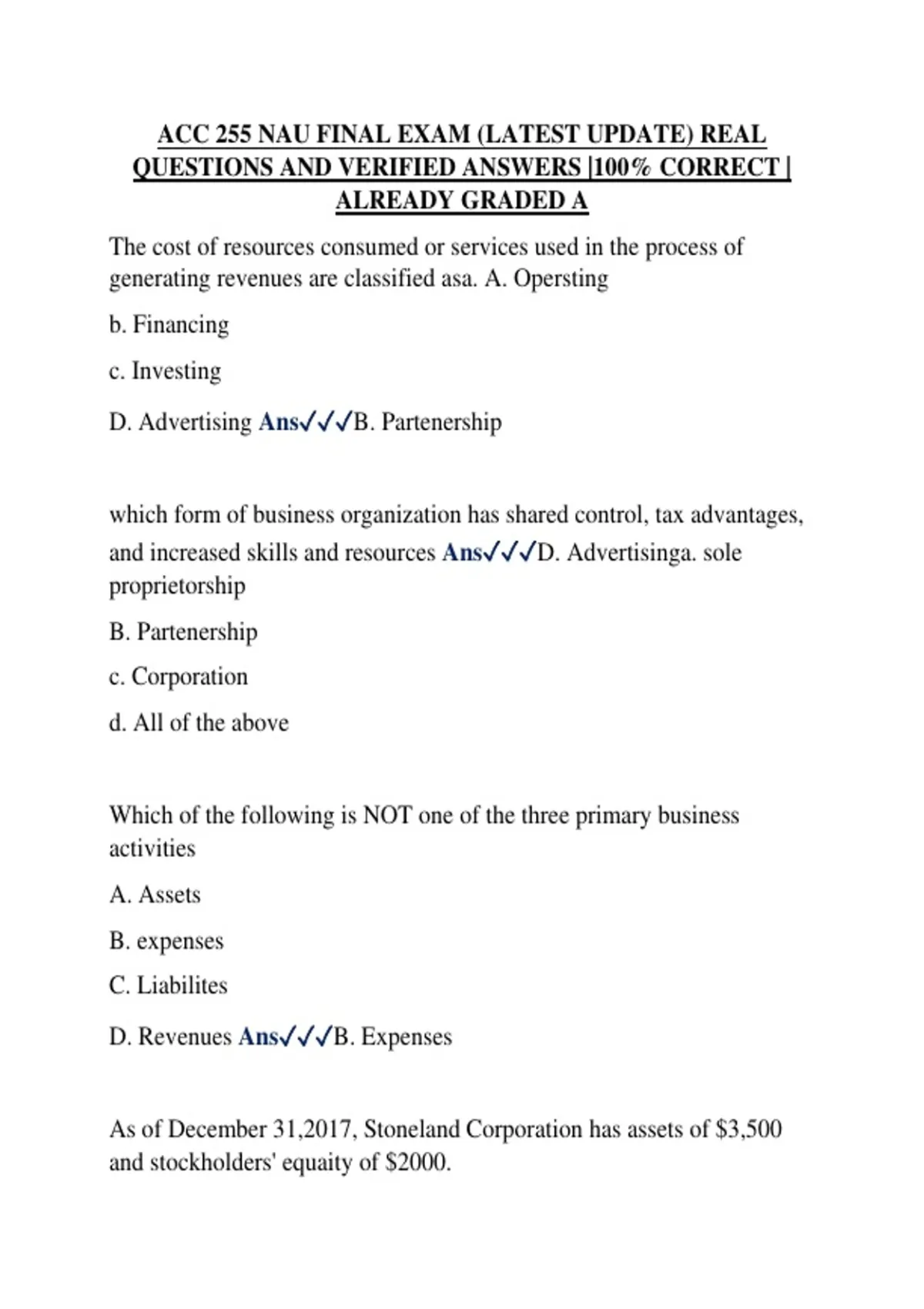 ACC 255 NAU FINAL EXAM (LATEST UPDATE) REAL QUESTIONS AND VERIFIED ANSWERS |100% CORRECT | ALREADY GRADED A