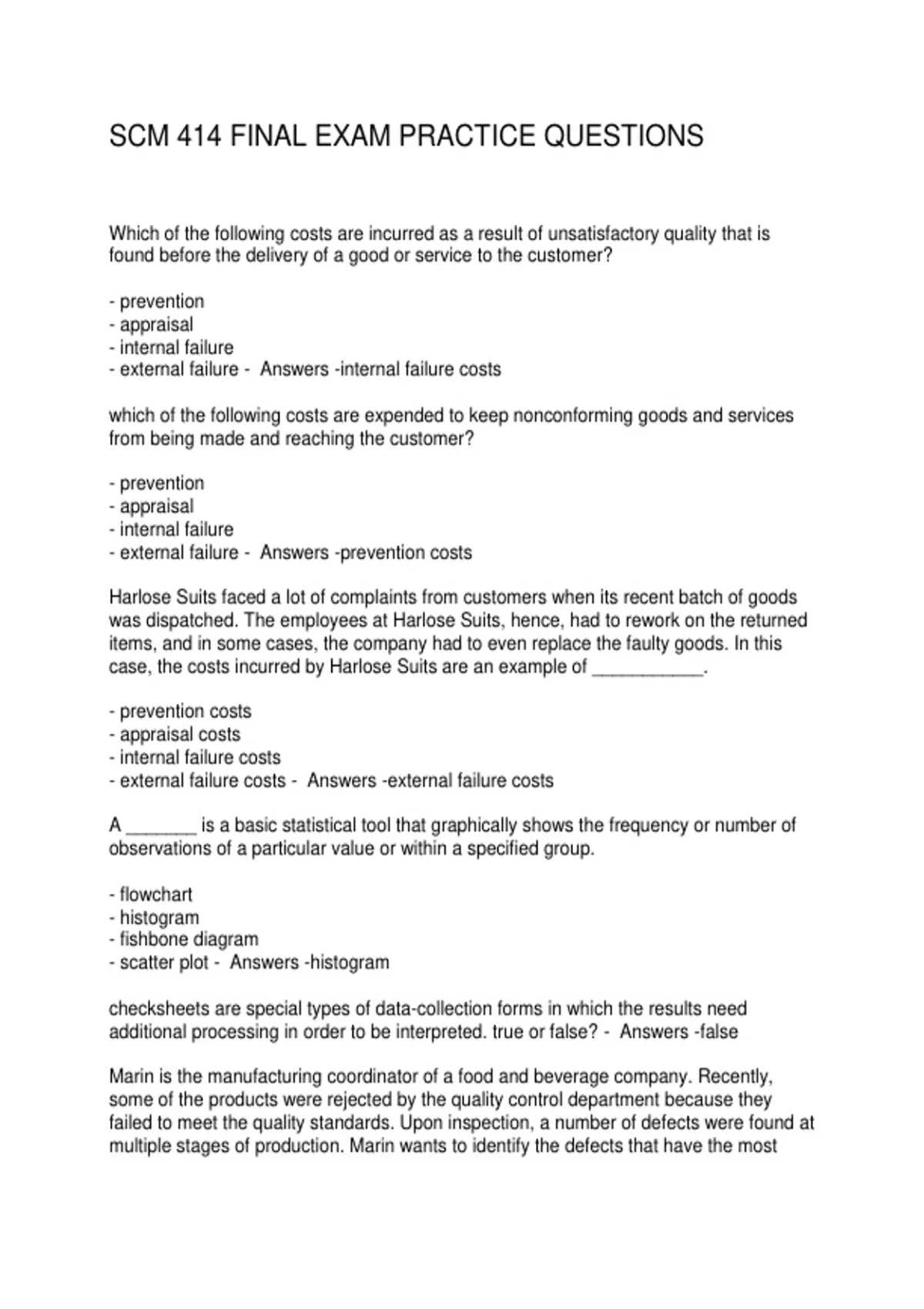SCM 414 FINAL EXAM PRACTICE QUESTIONS
