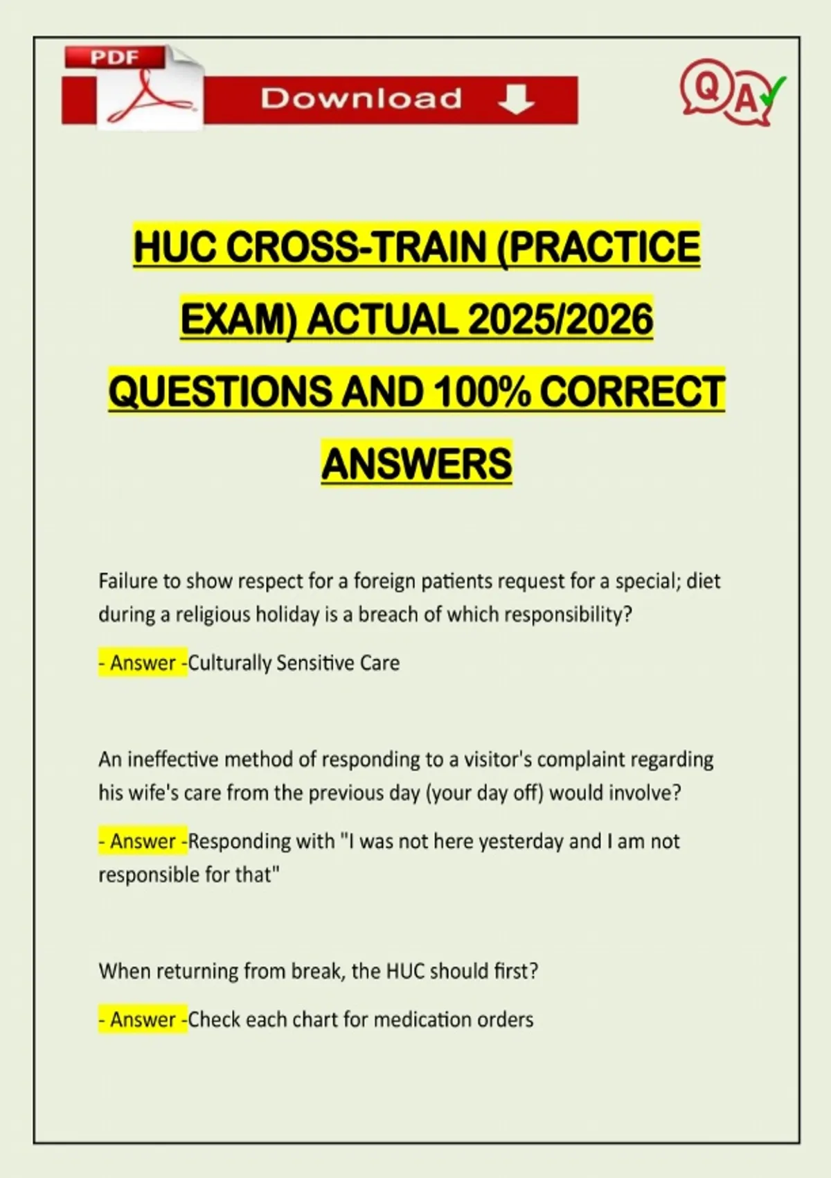 HUC CROSS-TRAIN (PRACTICE EXAM) ACTUAL 2026 QUESTIONS AND 100% CORRECT ANSWERS